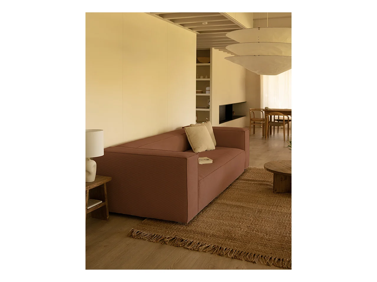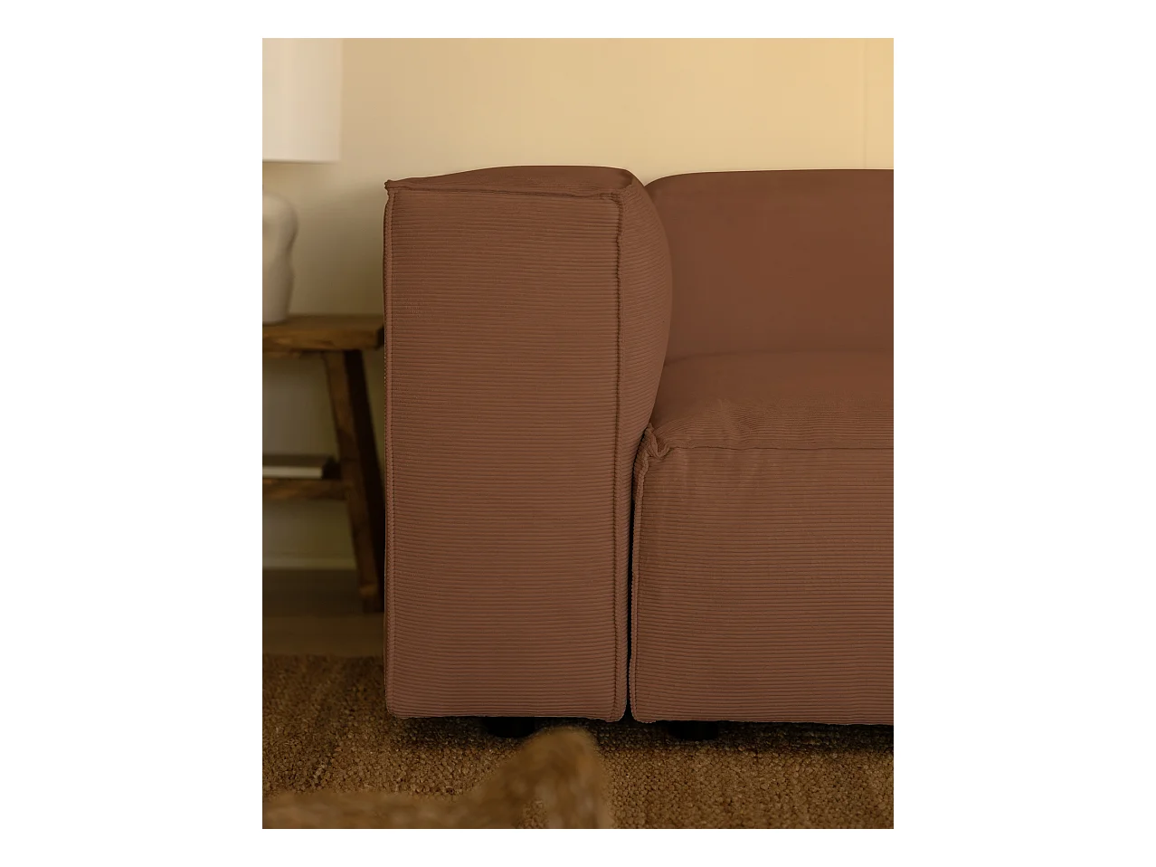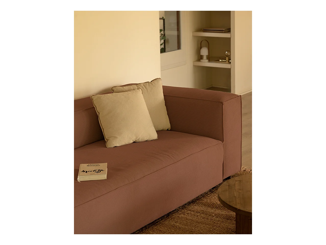 Canapé 4 places en velours côtelé couleur corail