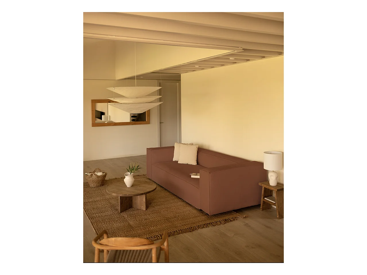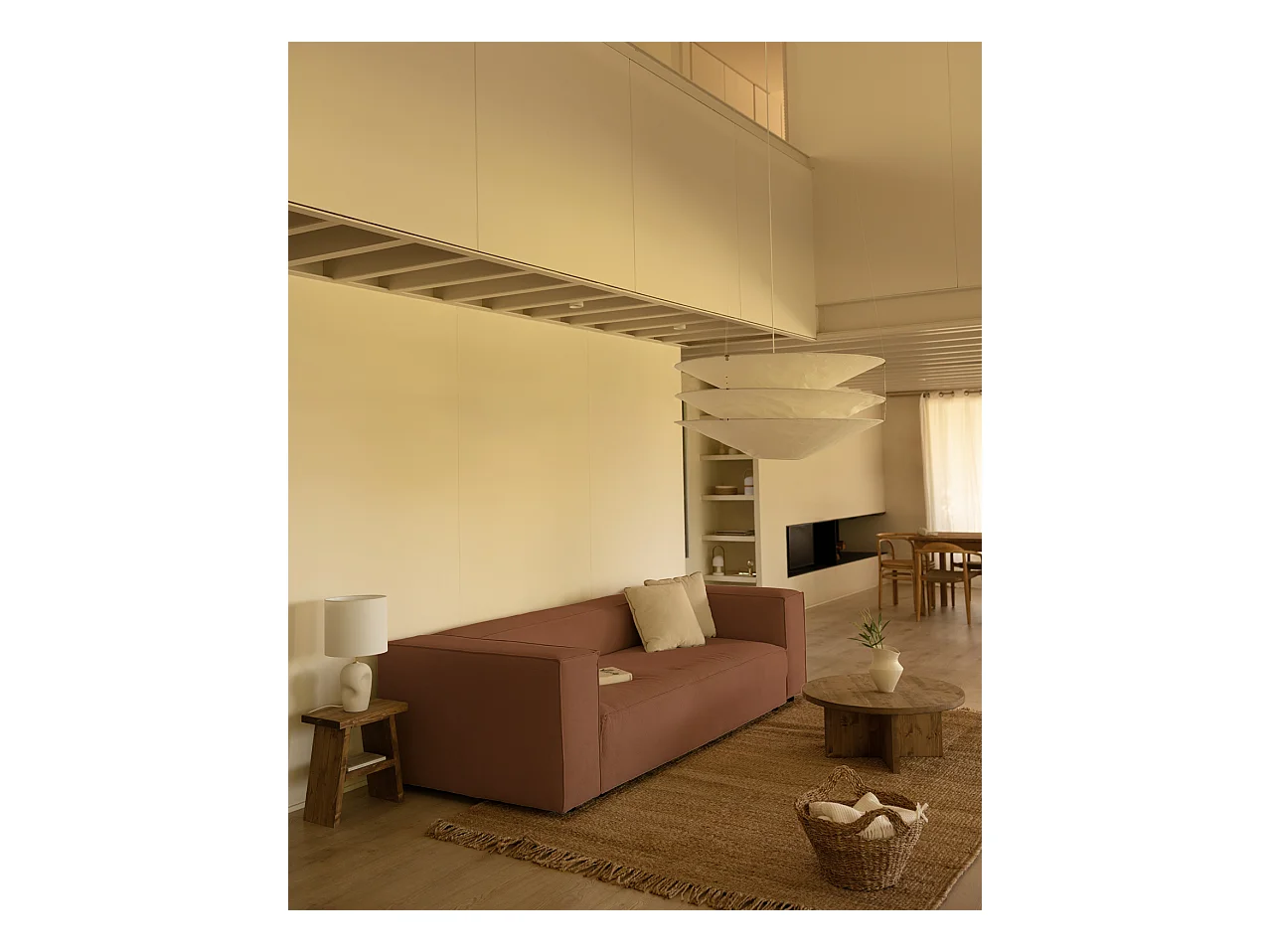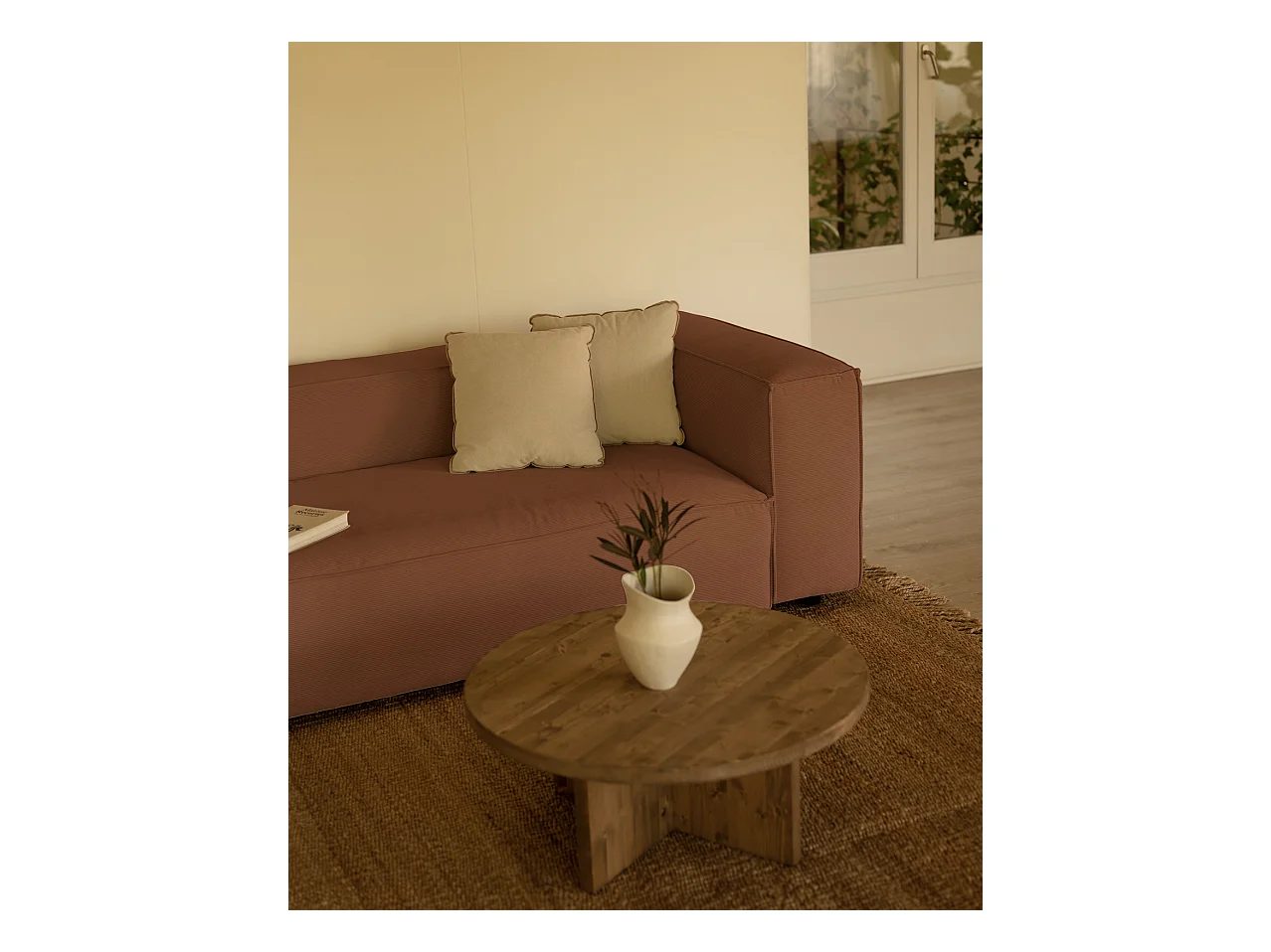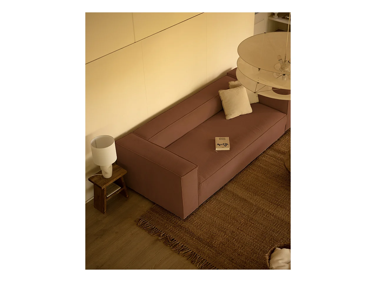 Canapé 4 places en velours côtelé couleur corail