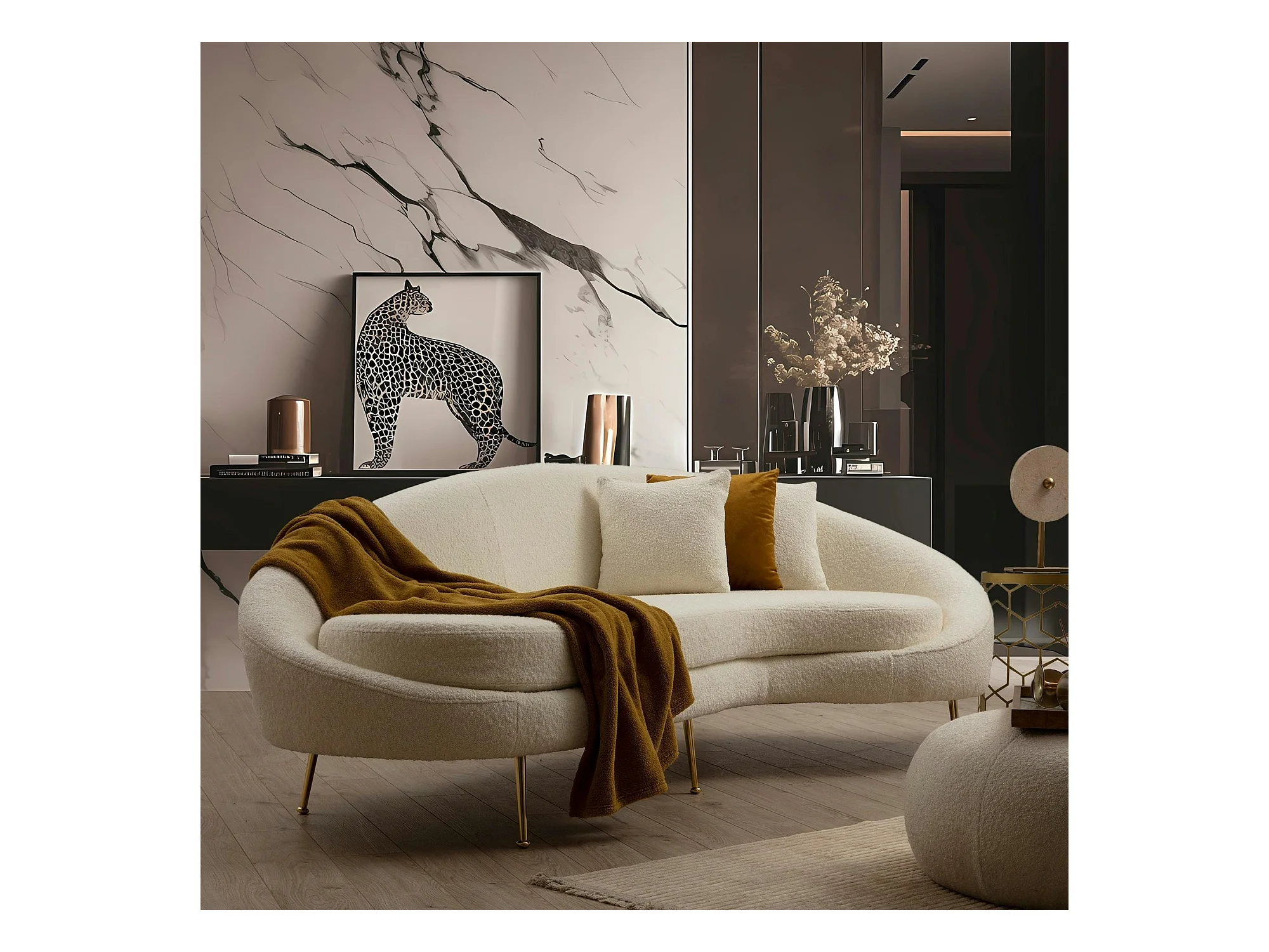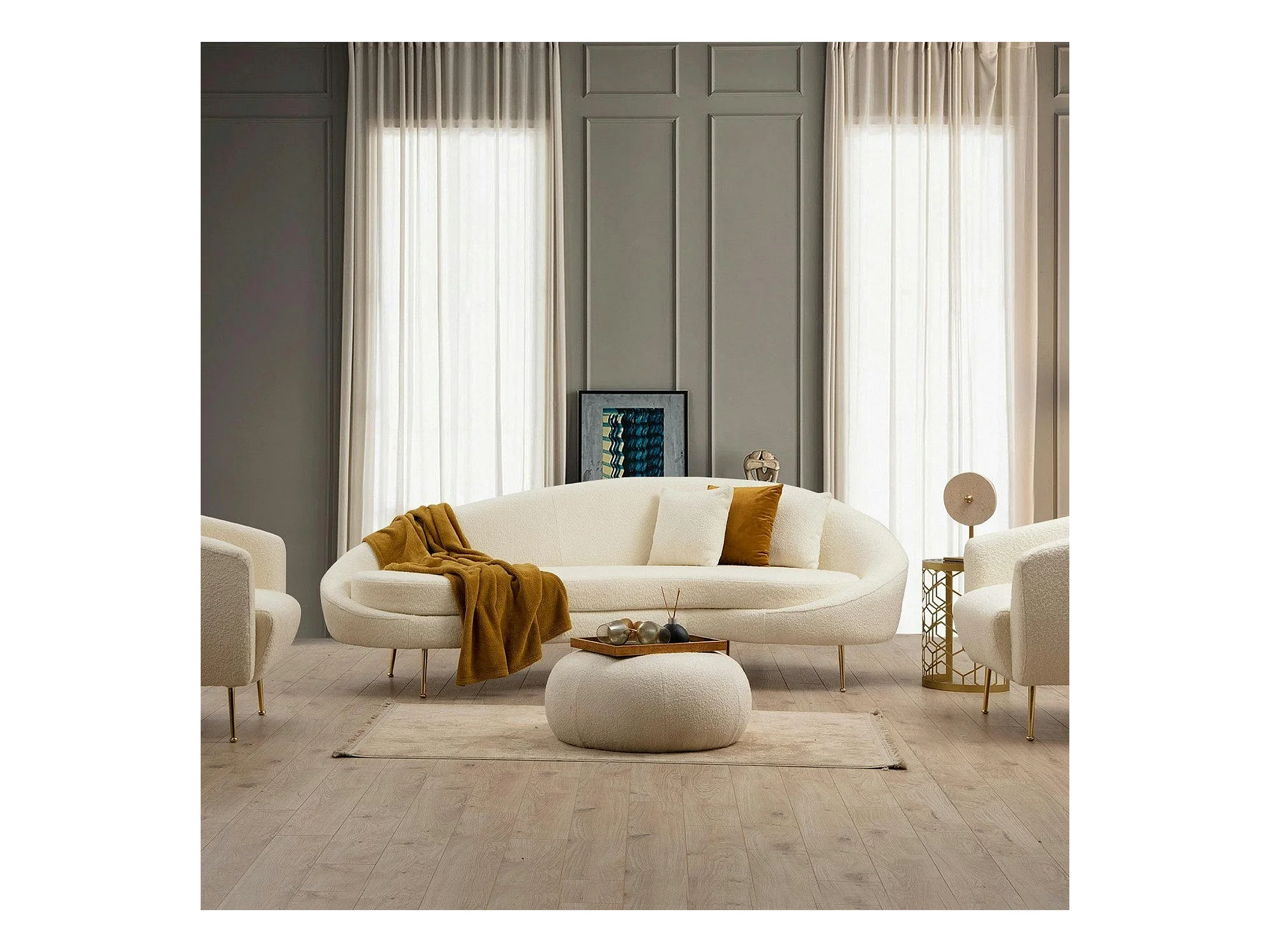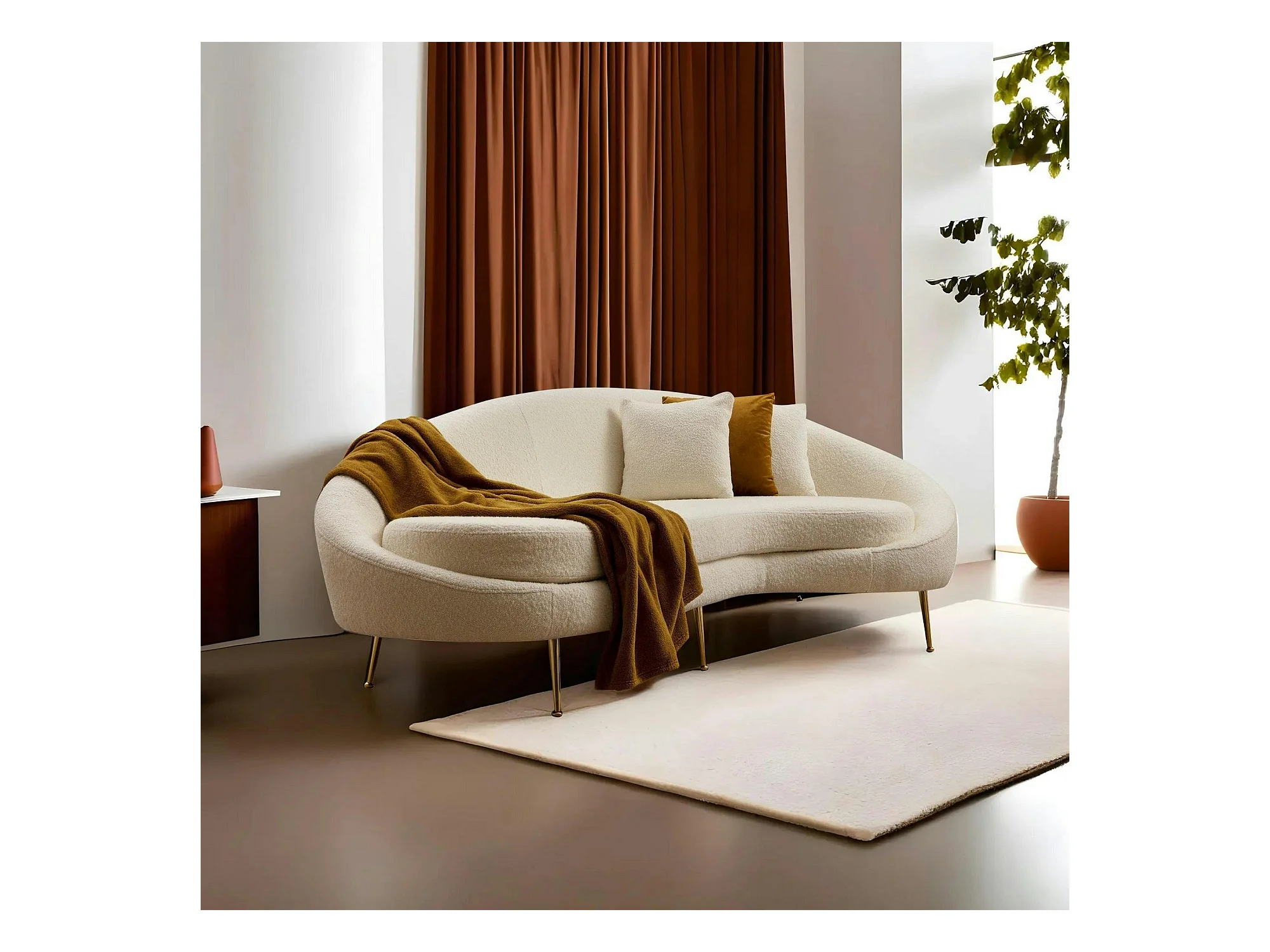 Canapé 4 places forme arrondie - écru, pieds dorés LUCCA