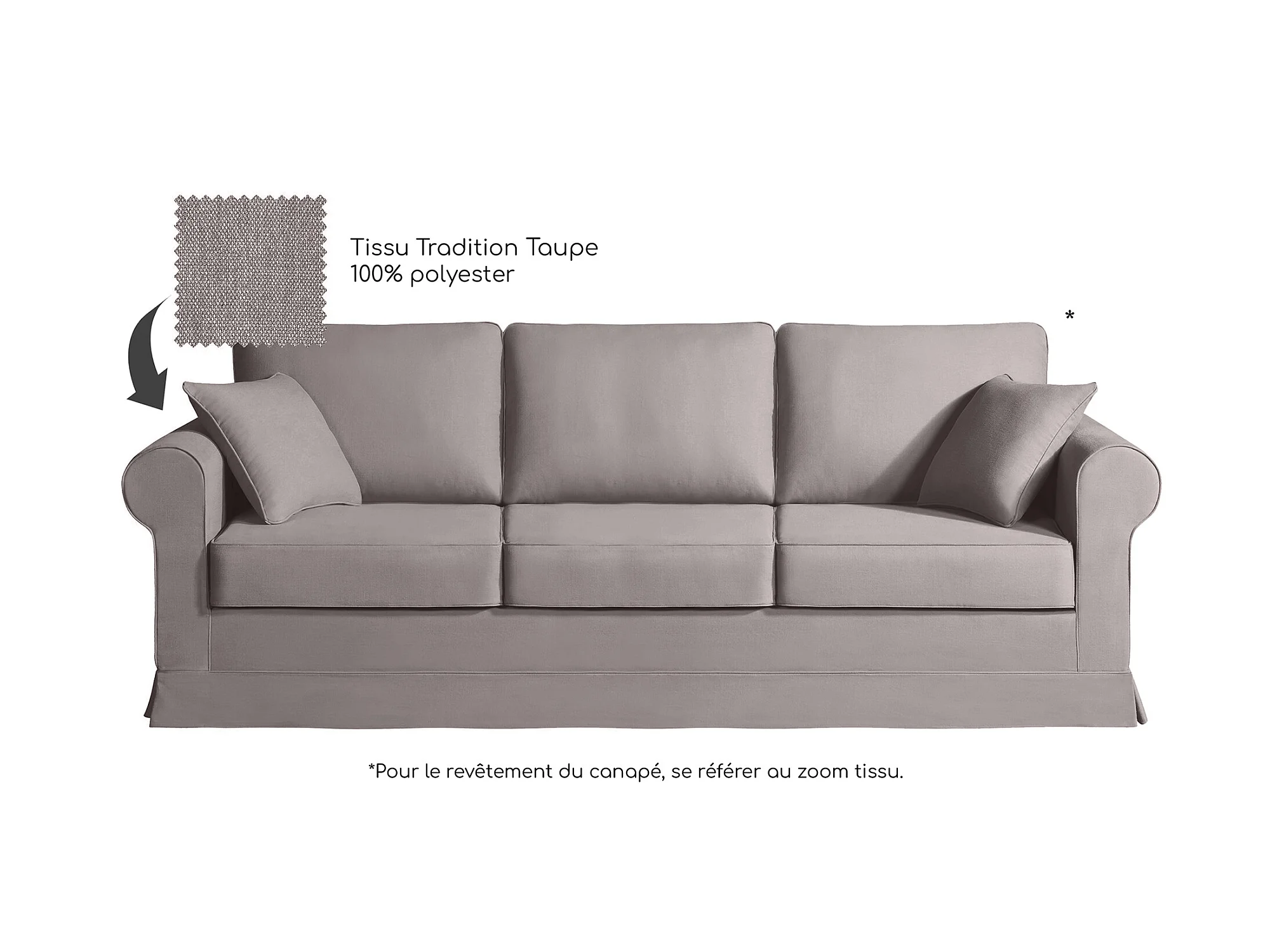 Canapé 5 pl COLME 230 cm fixe tissu Tradition Taupe - 100% déhoussable - Fab. France