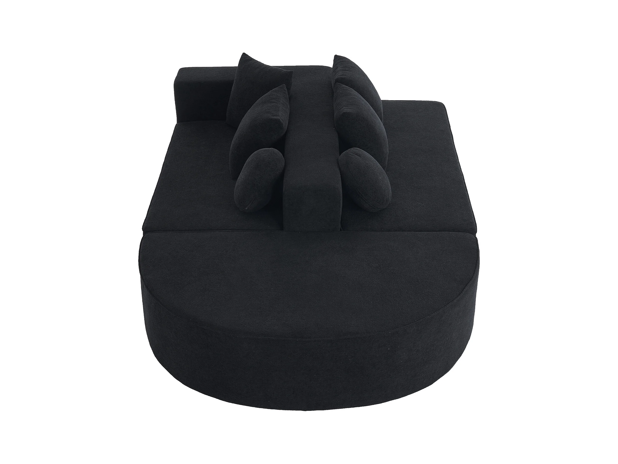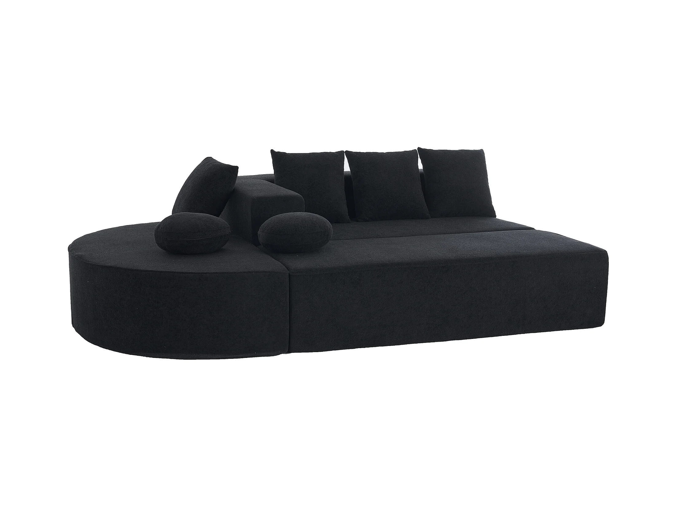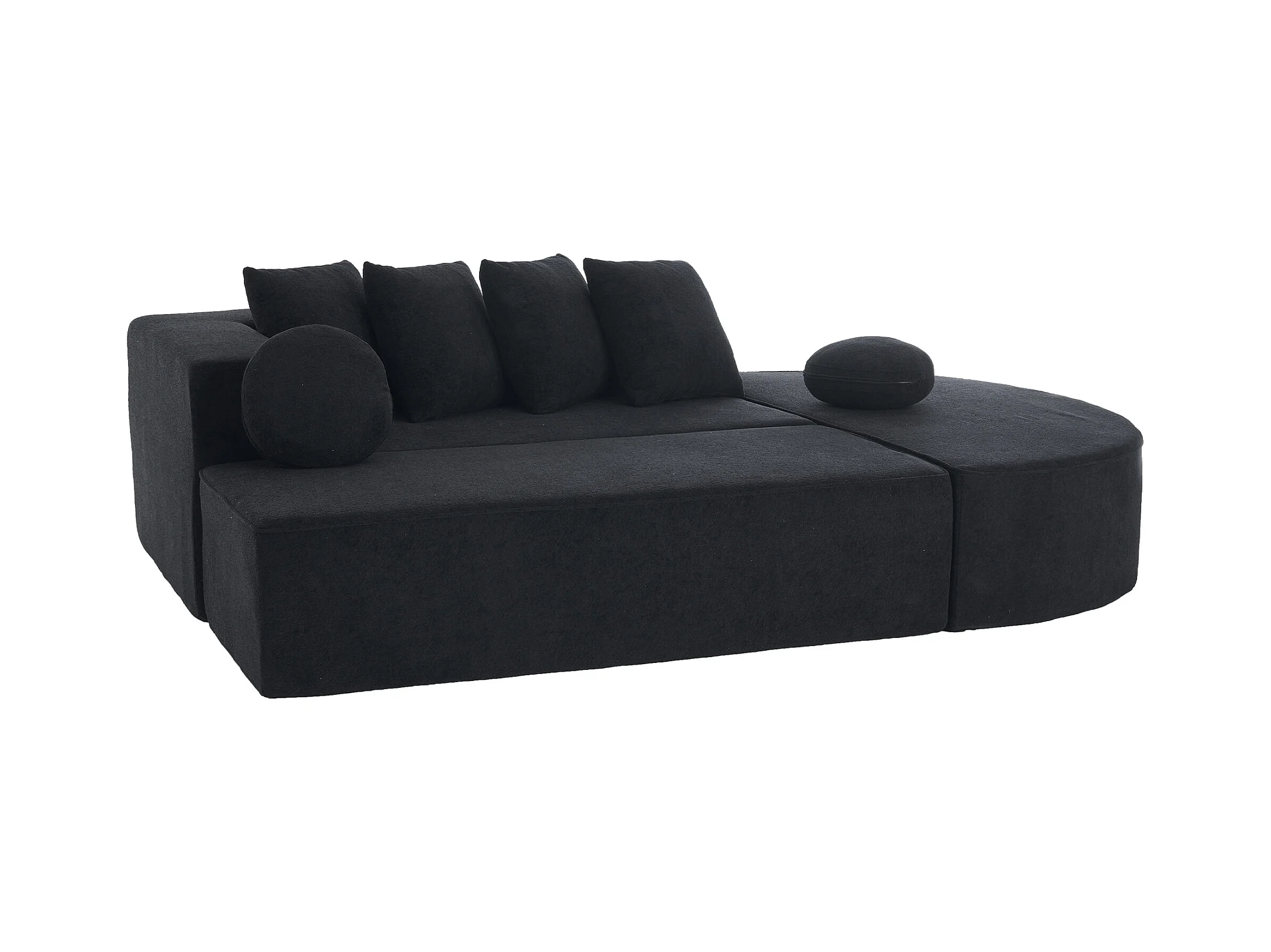 Canapé 5 places noir - Canapé sans cadre avec 4 coussins carrés et 2 coussins ronds - chenille
