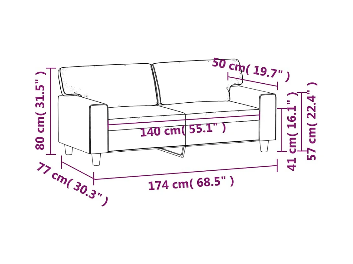 Canapé à 2 places Gris 140 cm Similicuir