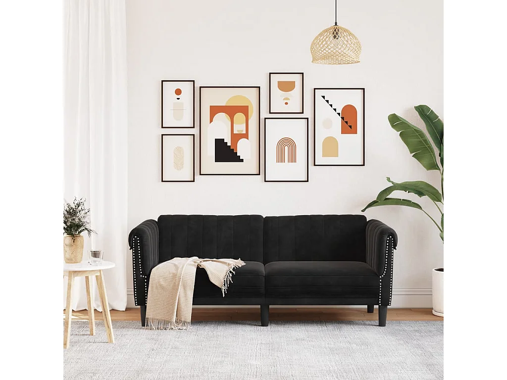 Canapé à 2 places noir velours FR48230
