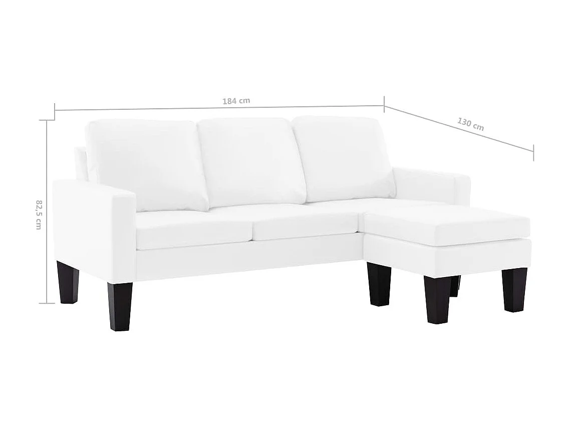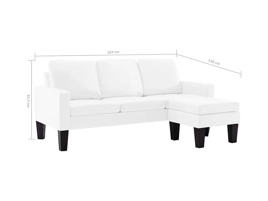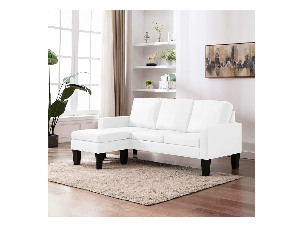Canapé à 3 places avec repose-pied Blanc Similicuir