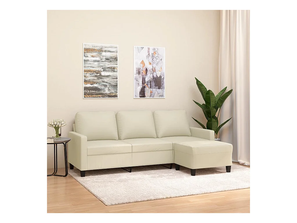 Canapé à 3 places avec repose-pieds Crème 180 cm Similicuir OID2452