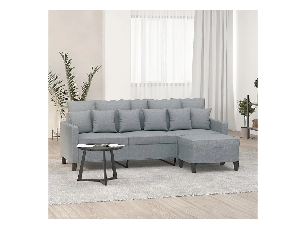 Canapé à 3 places avec repose-pieds Gris clair 180 cm Tissu LODW58045