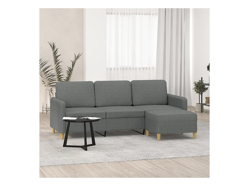 Canapé à 3 places avec repose-pieds Gris foncé 180 cm Tissu REO22185