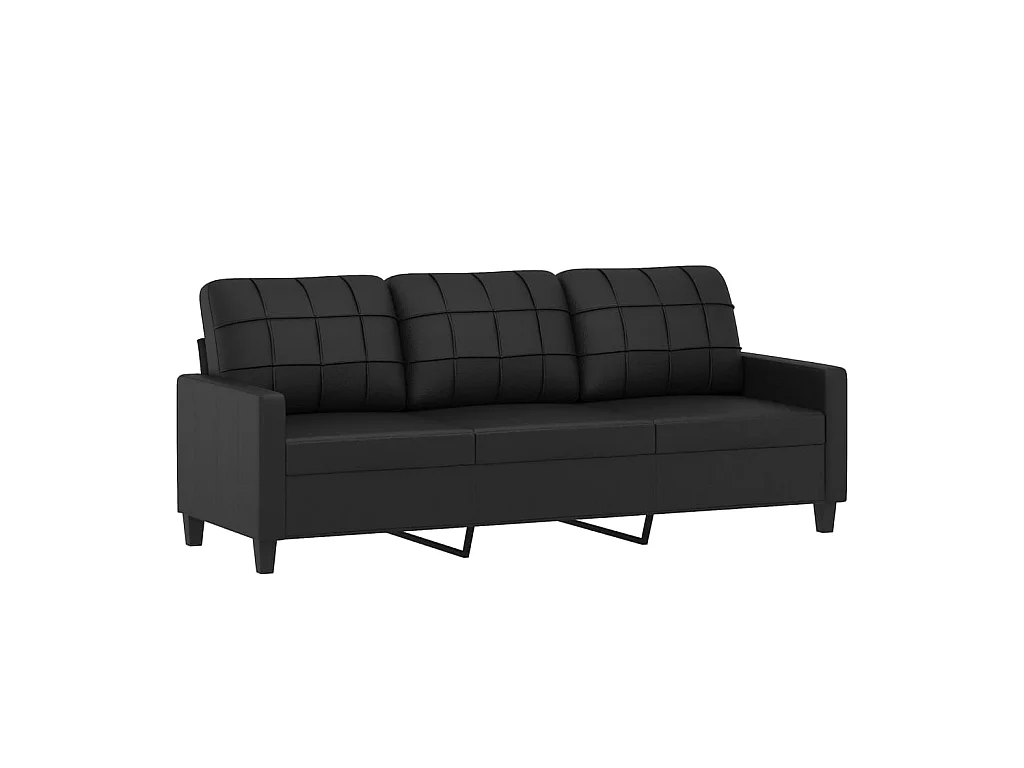 Canapé à 3 places avec repose-pieds Noir 180 cm Similicuir OID1003
