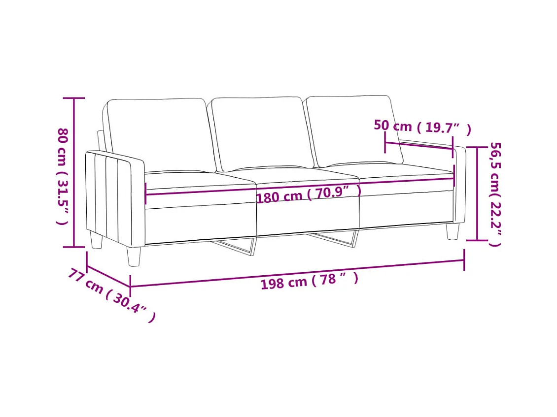 Canapé à 3 places Crème 180 cm Similicuir