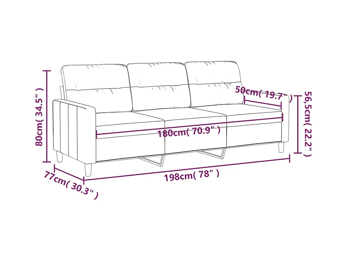 Canapé à 3 places Noir 180 cm Tissu