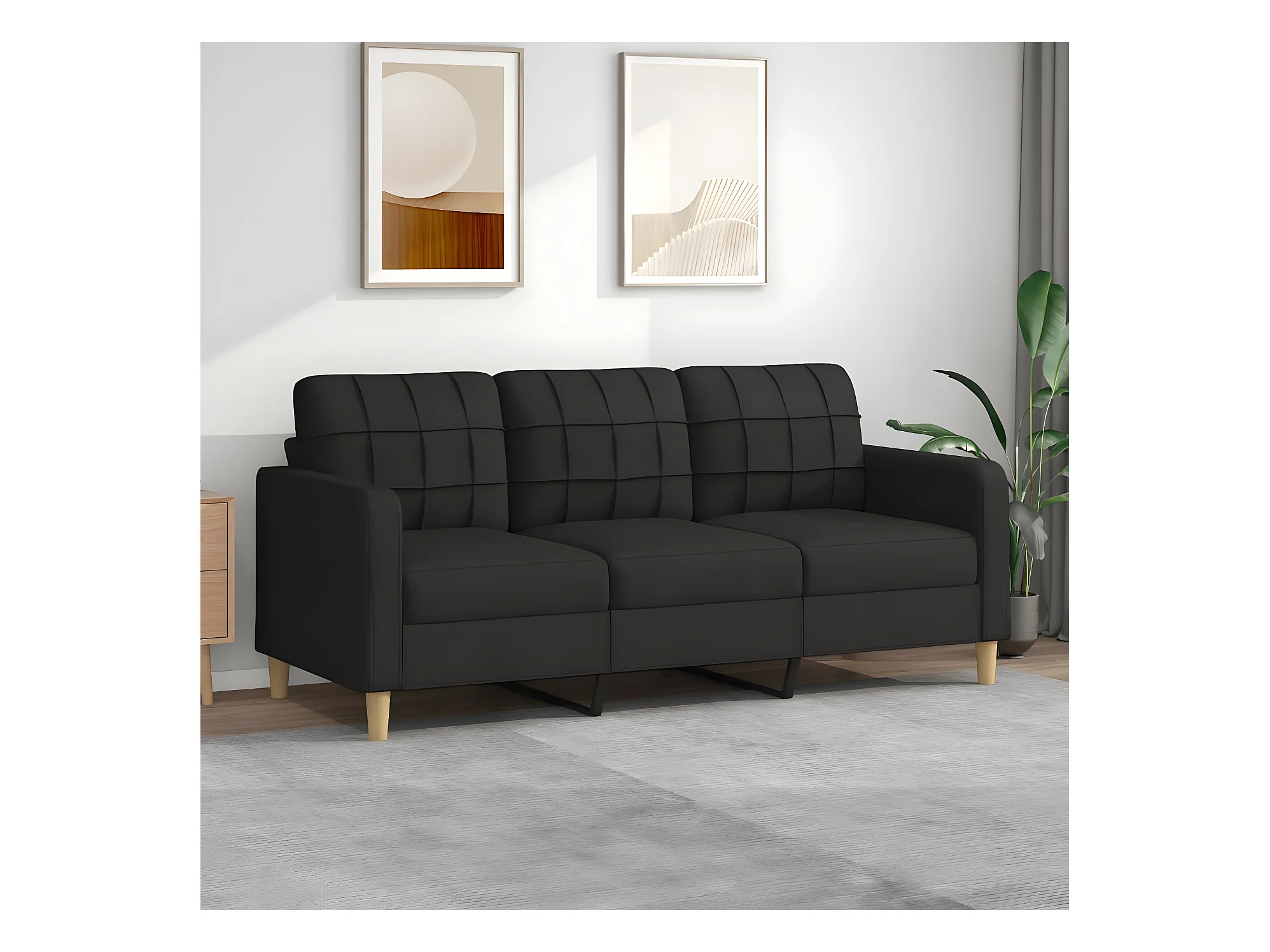 Canapé à 3 places Noir 180 cm Tissu OID5533