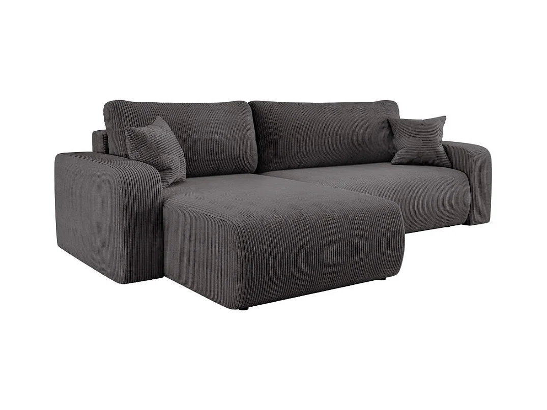 Canapé ALYA d'angle max réversible et convertible 5 places en velours côtelé - Gris