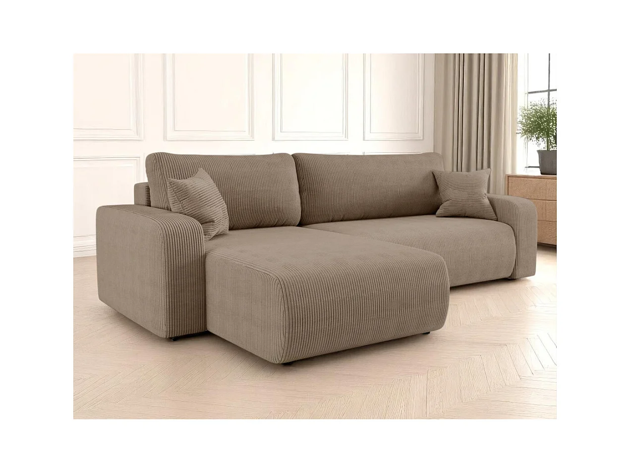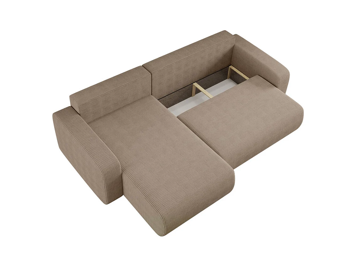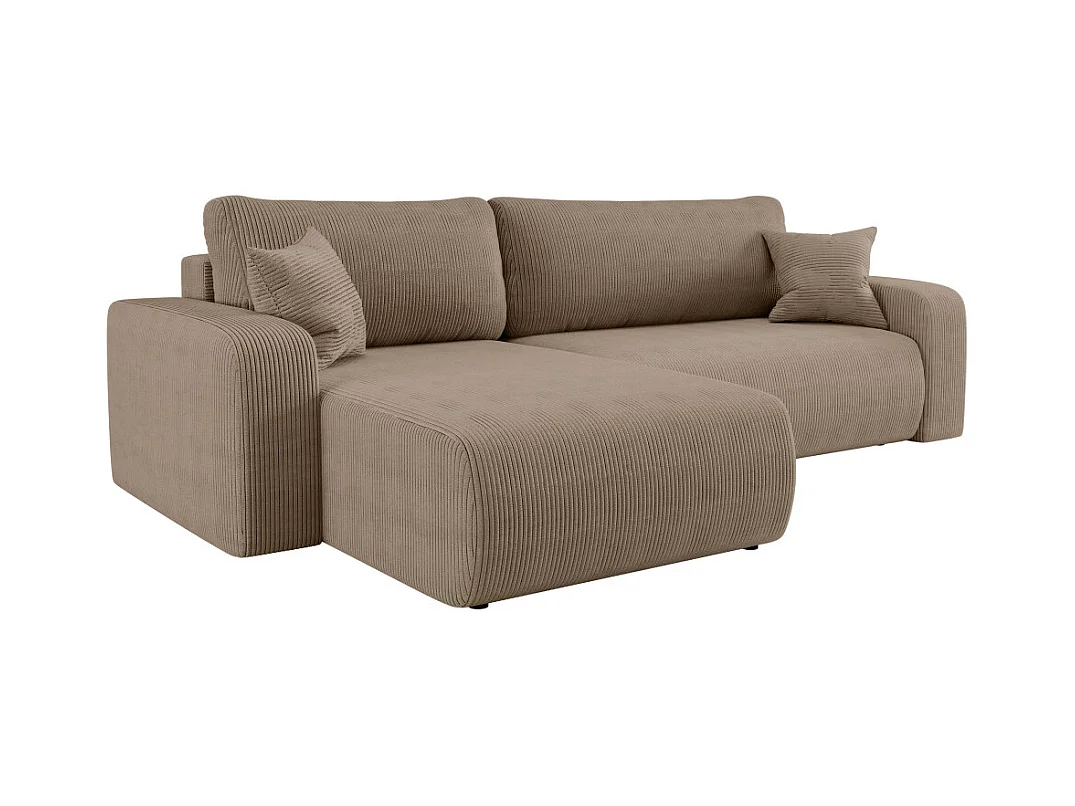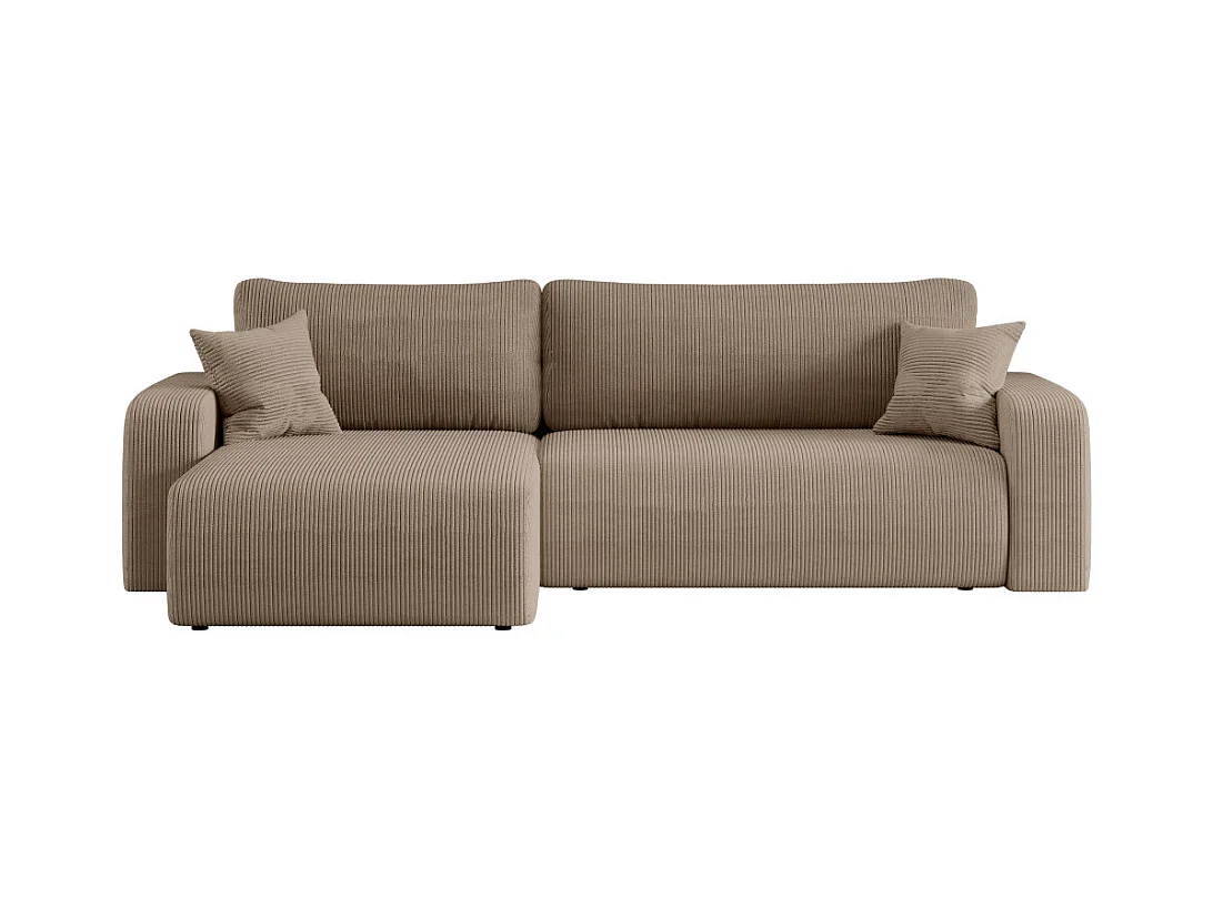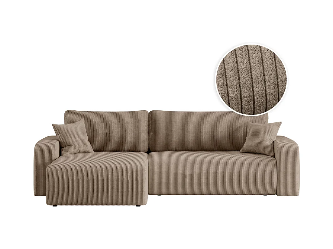 Canapé ALYA d'angle max réversible et convertible 5 places en velours côtelé - Taupe