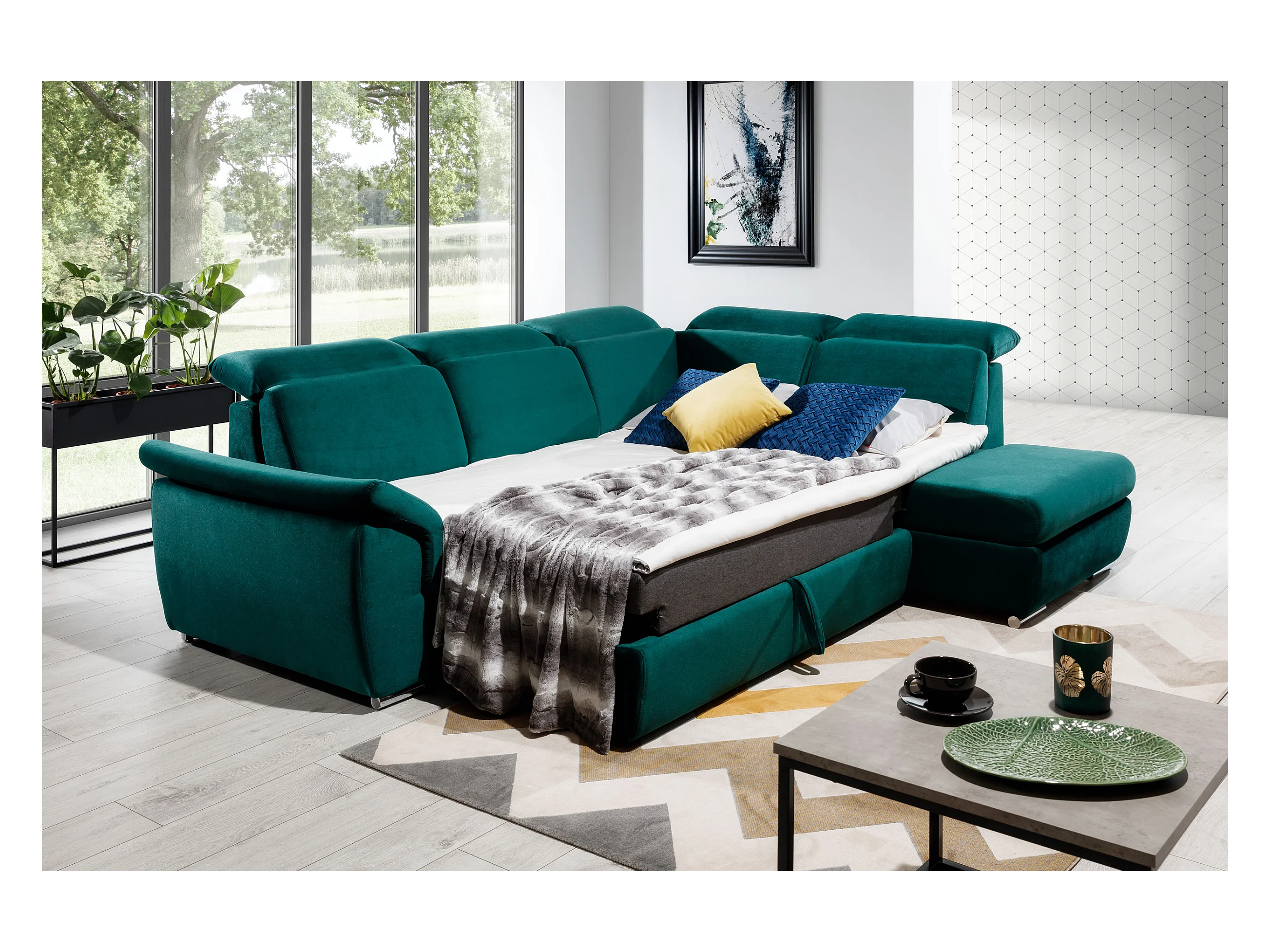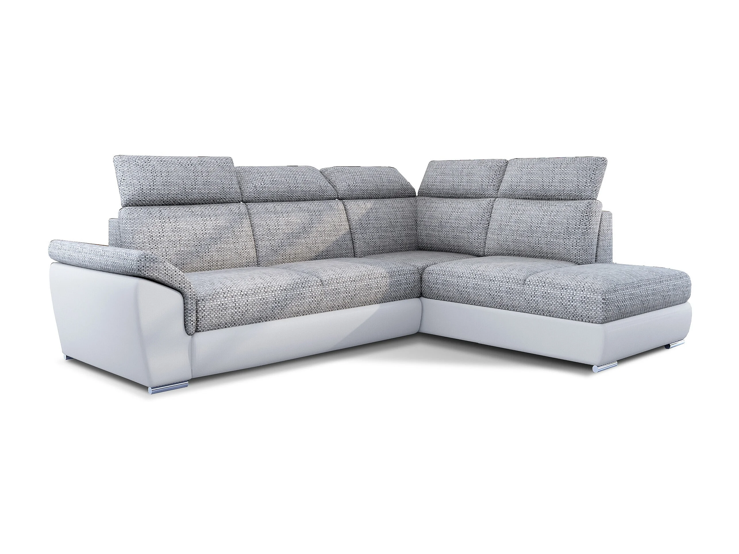 Canapé angle droit convertible tissu gris chiné et simili blanc avec appuis-tête réglables Kepita 260cm