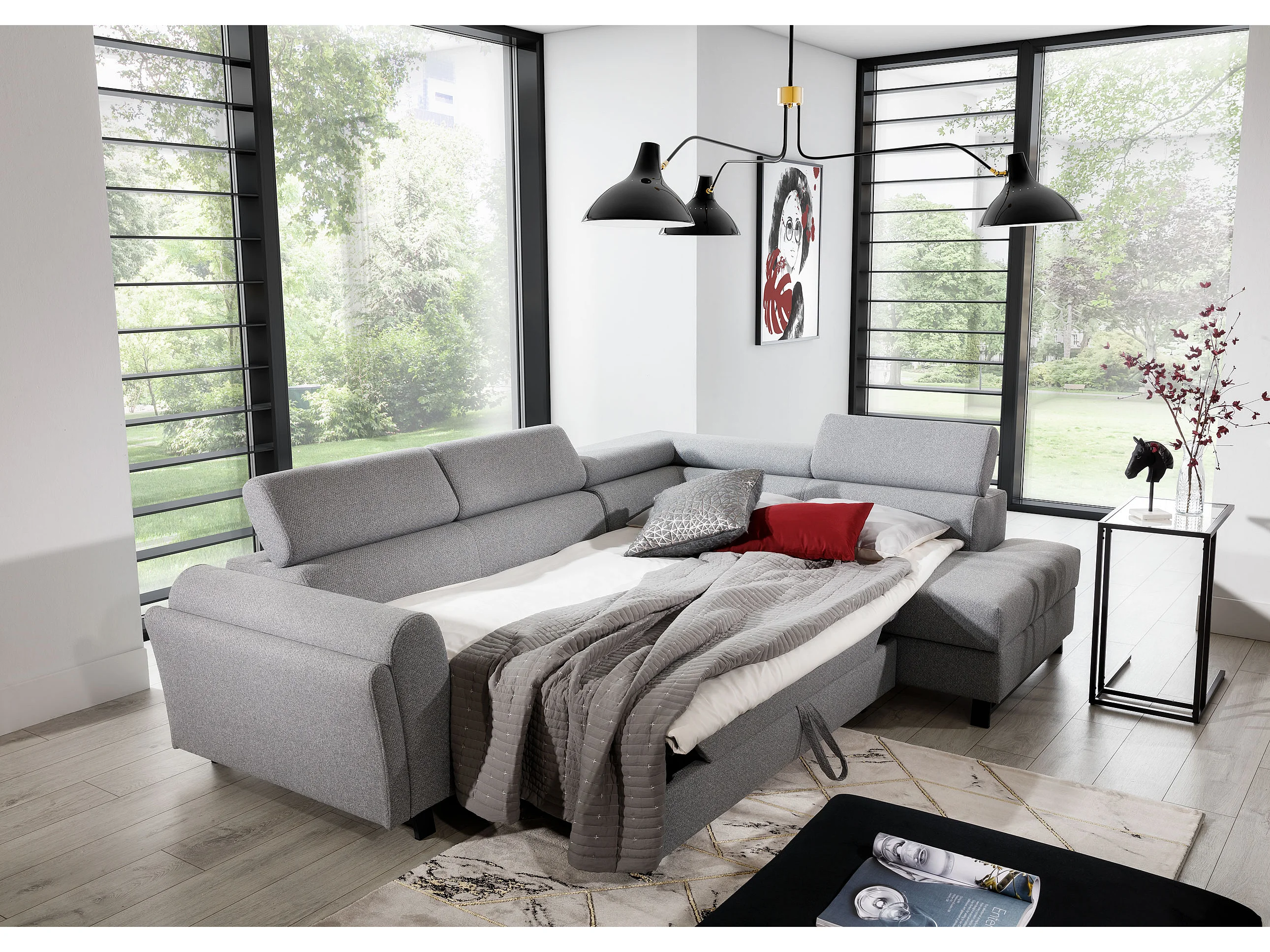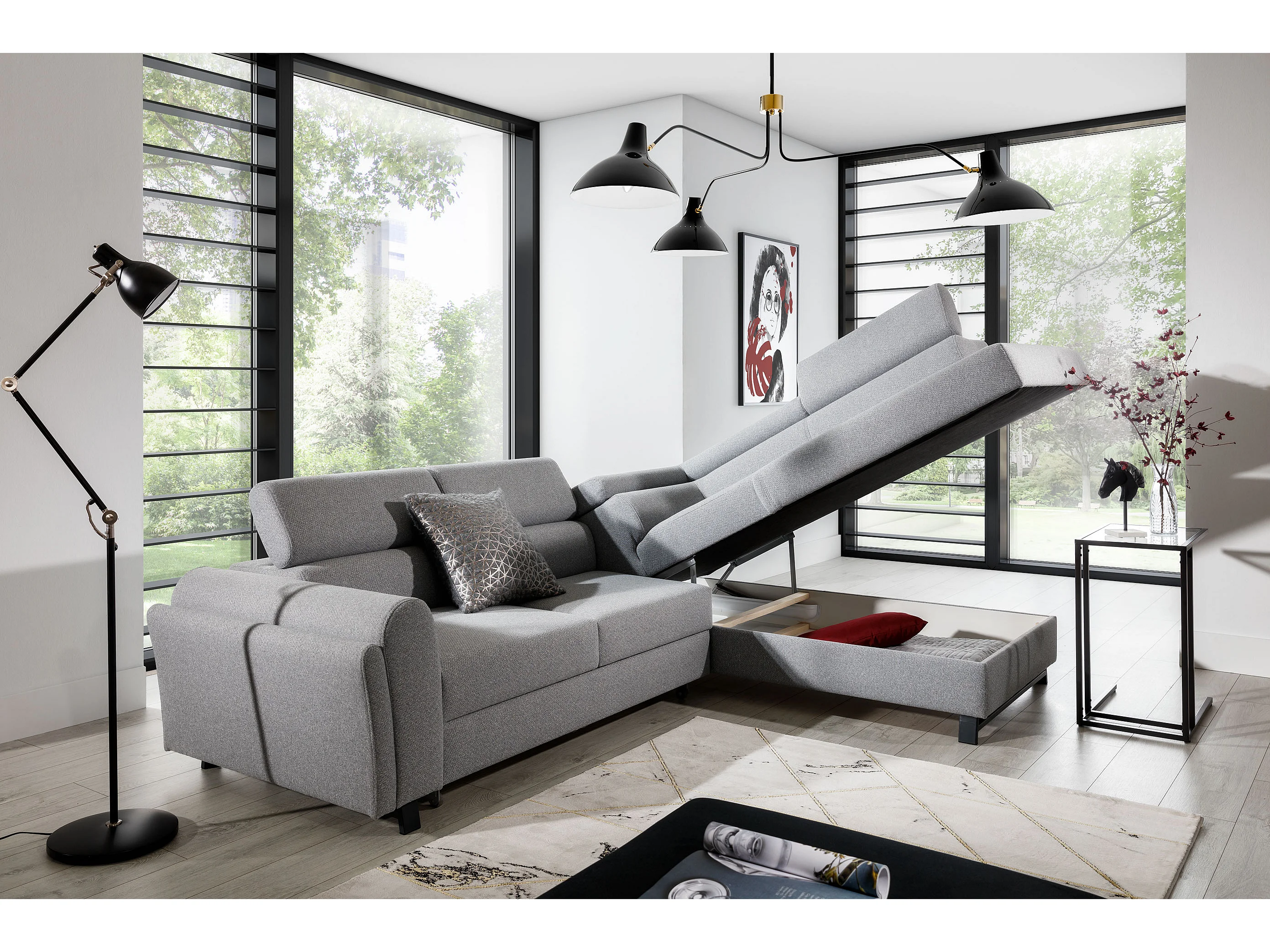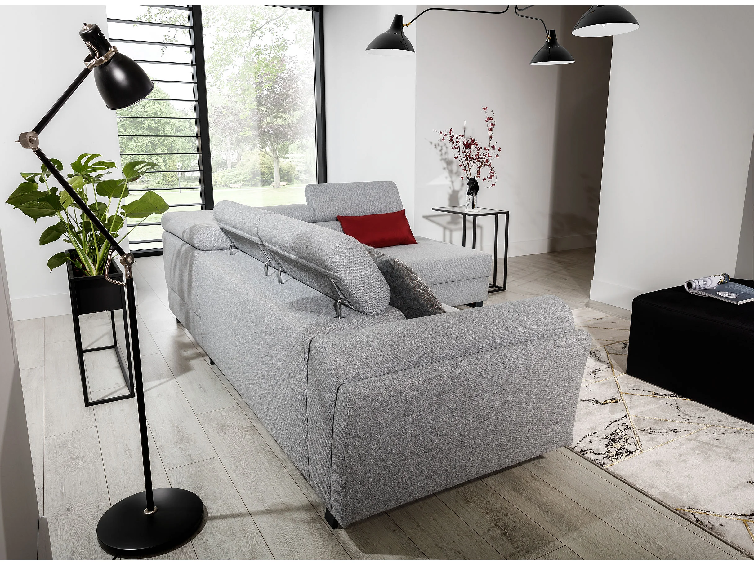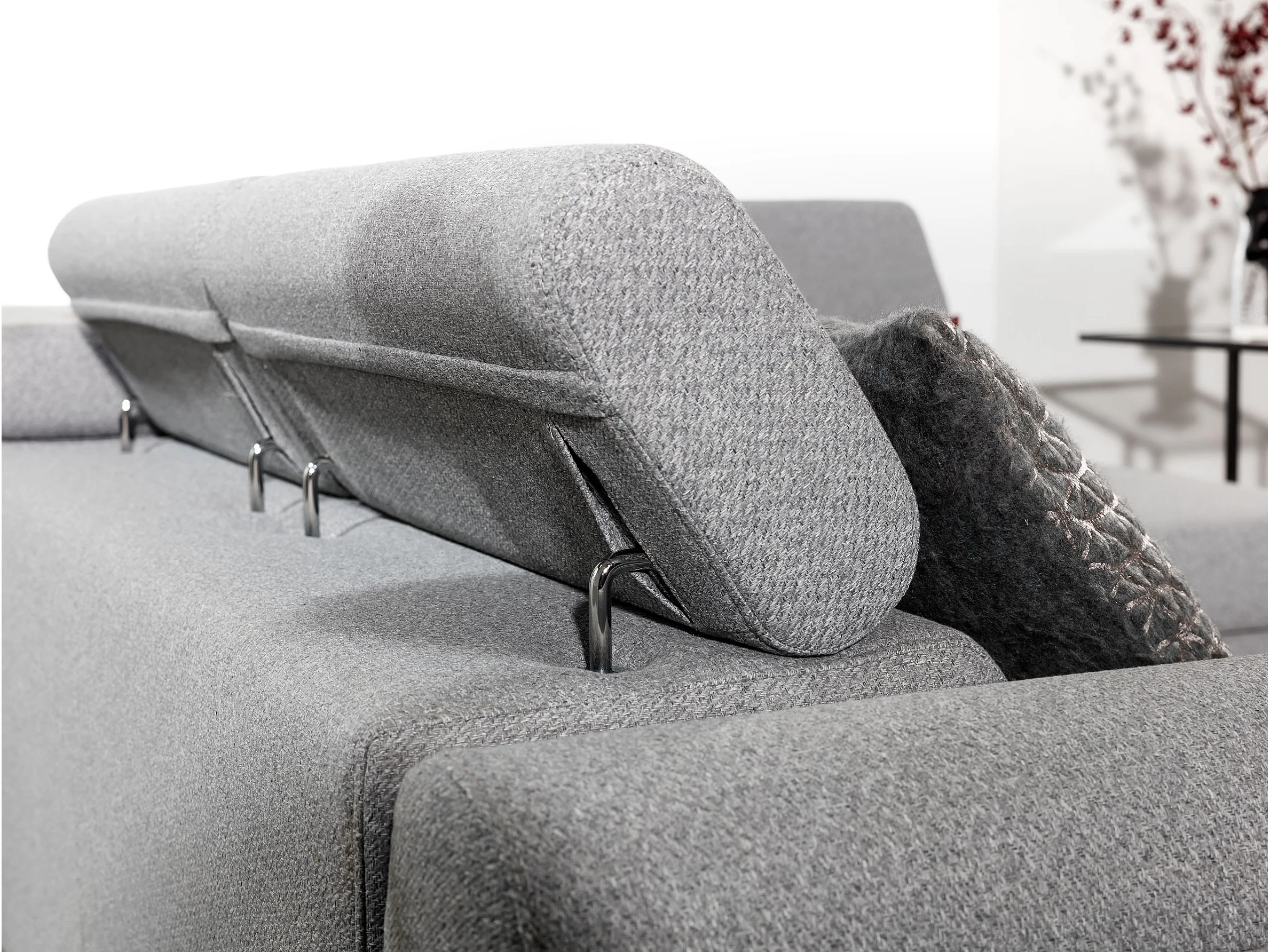 Canapé angle droit convertible tissu gris foncé avec têtières réglables Nikos 265cm 2