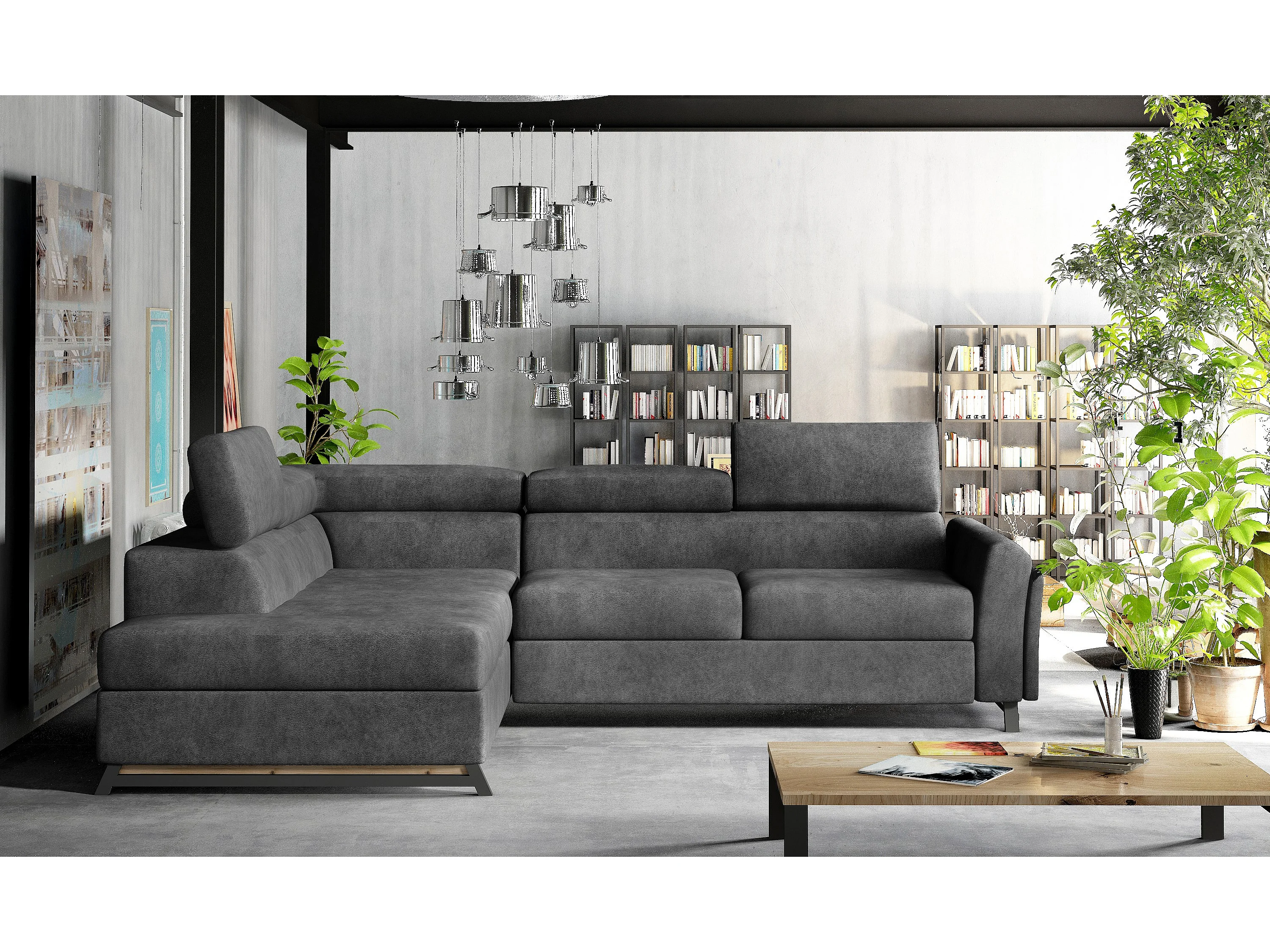 Canapé angle gauche convertible tissu doux gris foncé avec têtières réglables Nikos 265cm