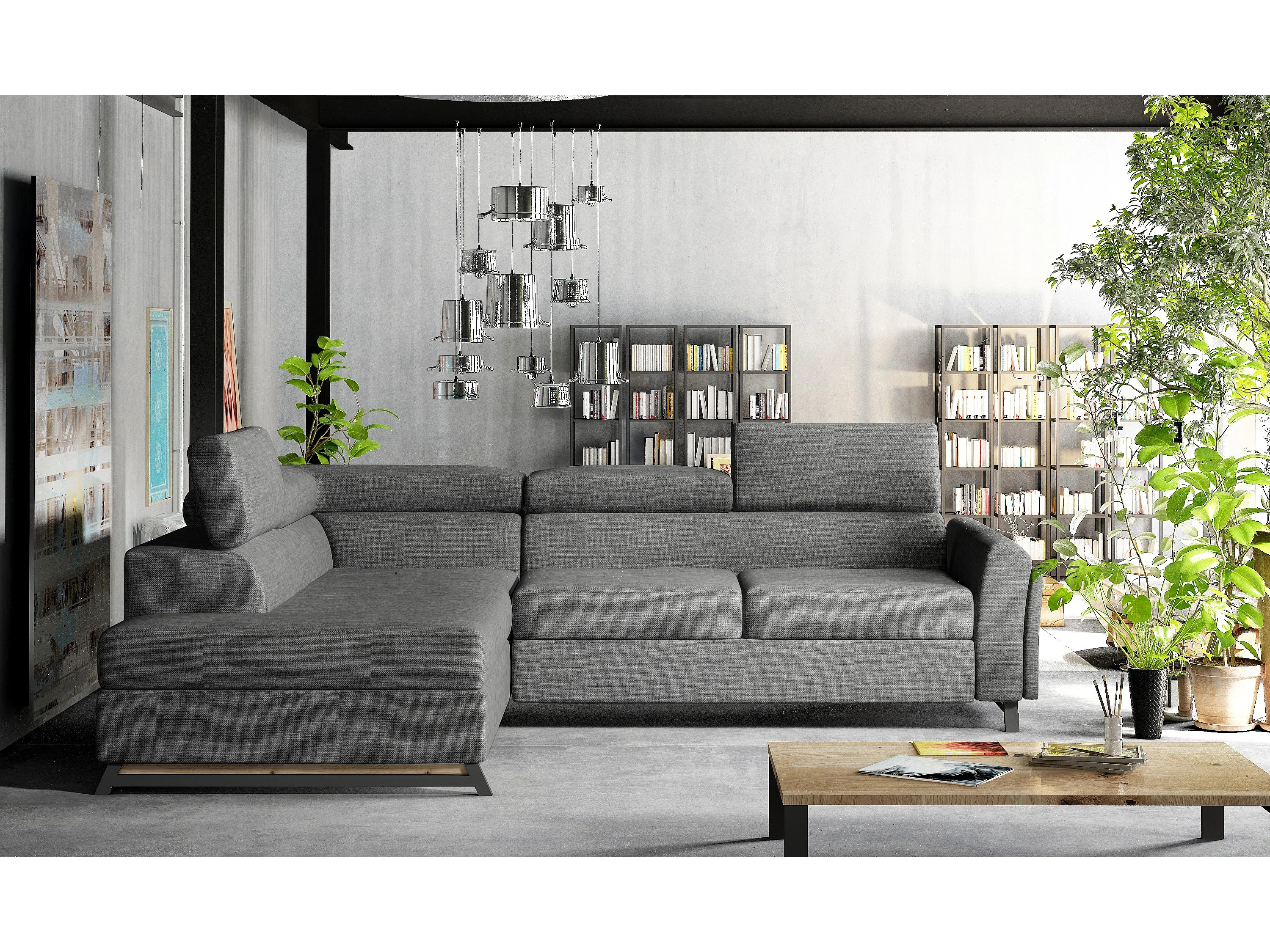Canapé angle gauche convertible tissu gris foncé avec têtières réglables Nikos 265cm