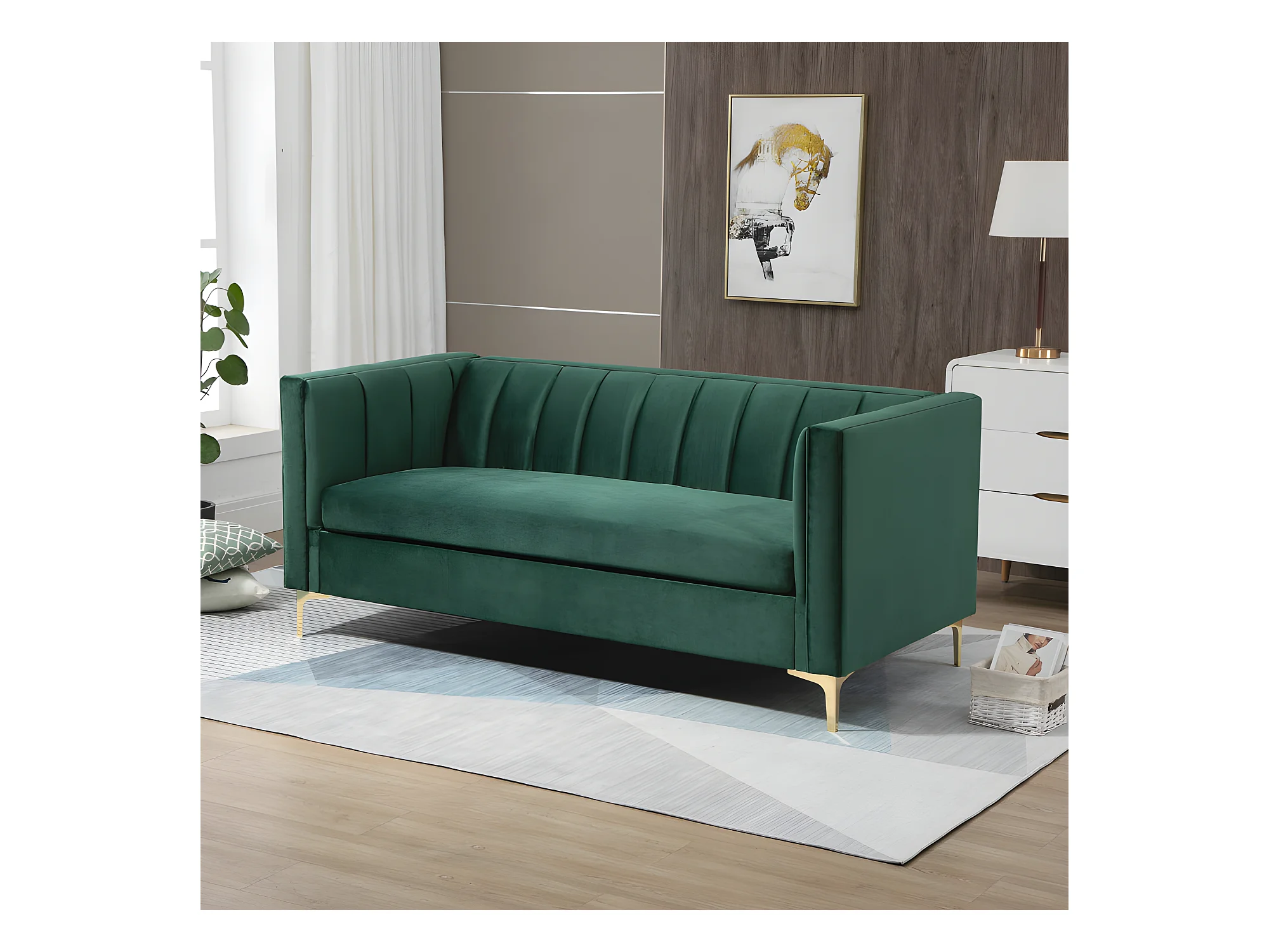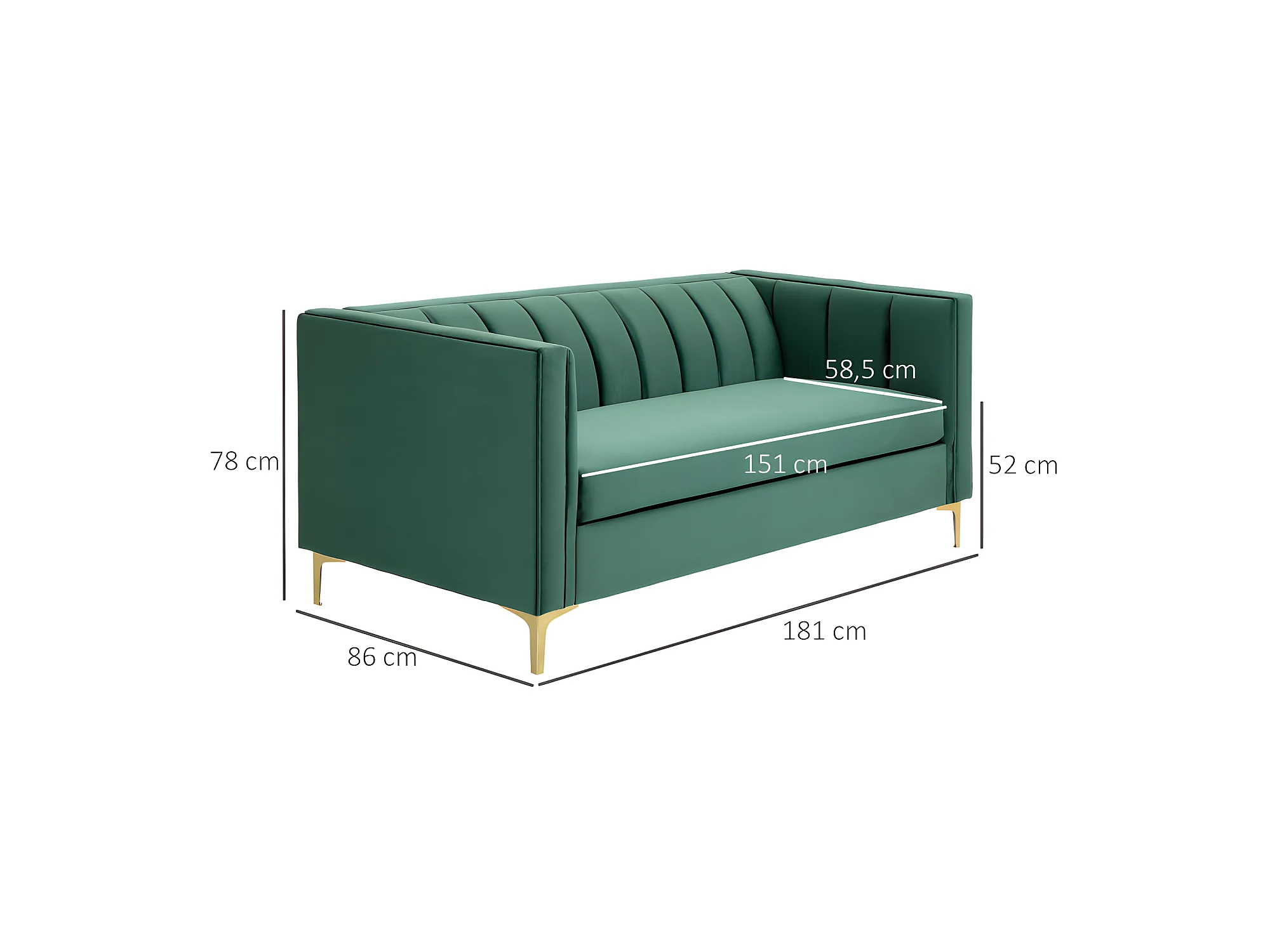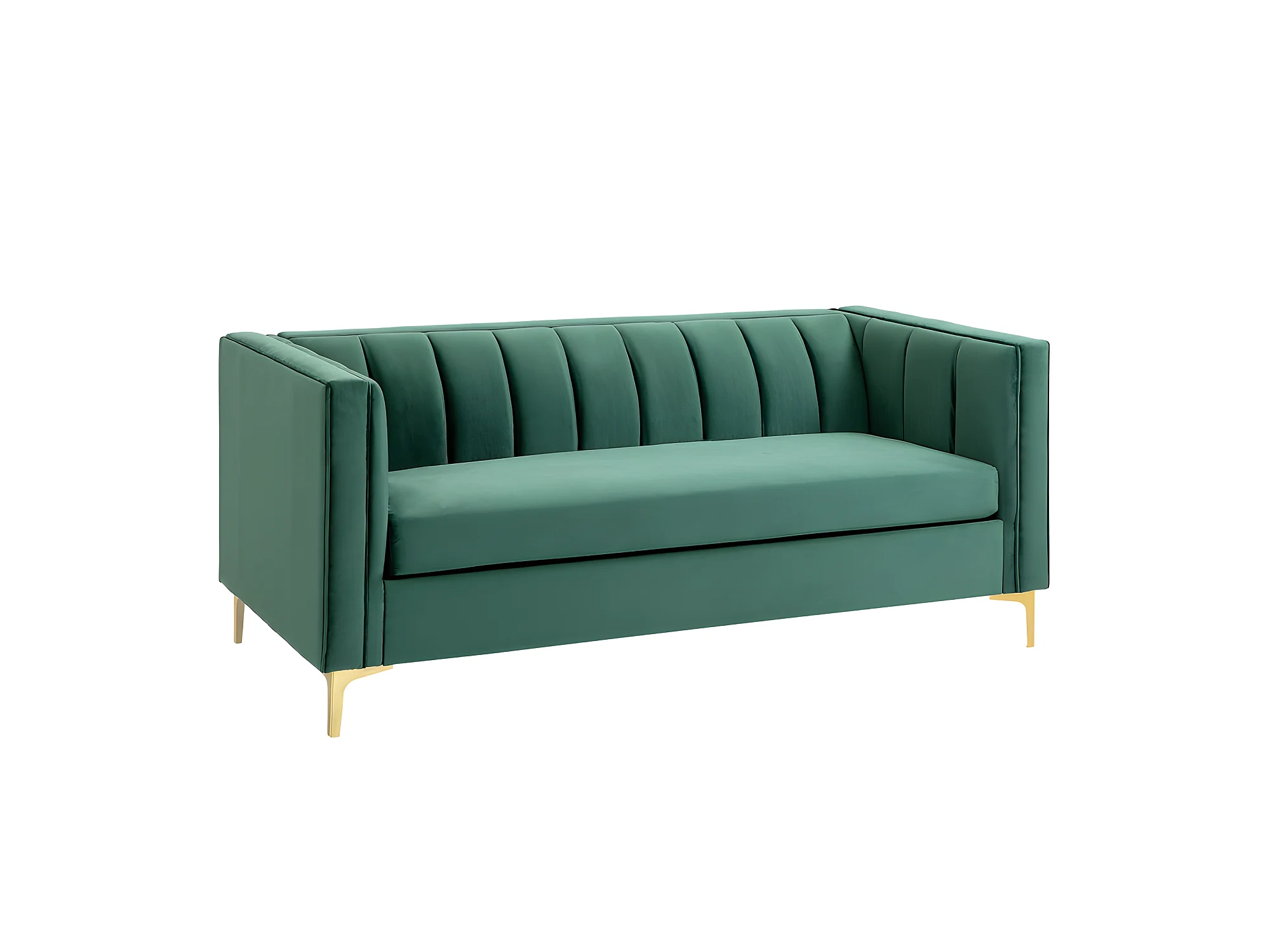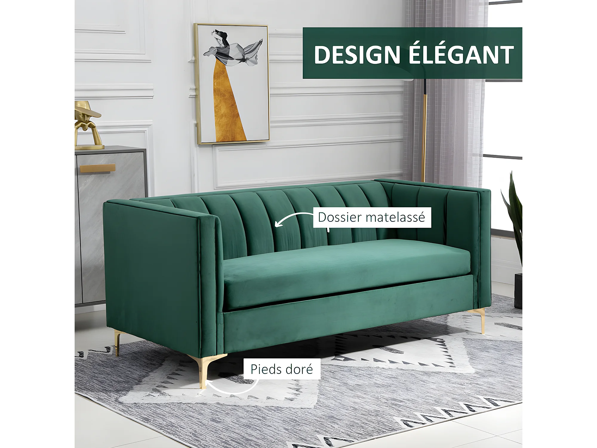 Canapé art déco BENIDORM vert sapin pieds dorés