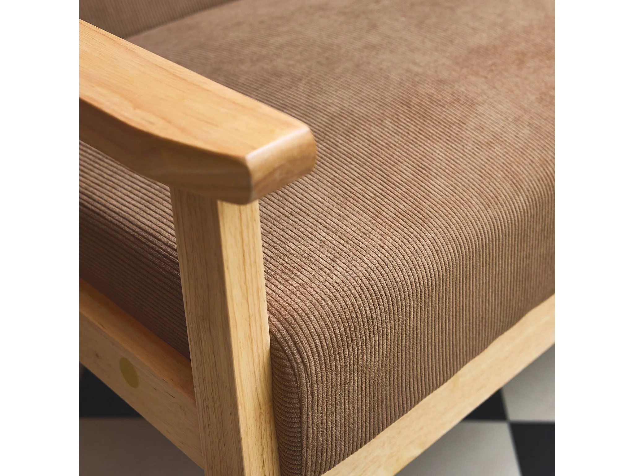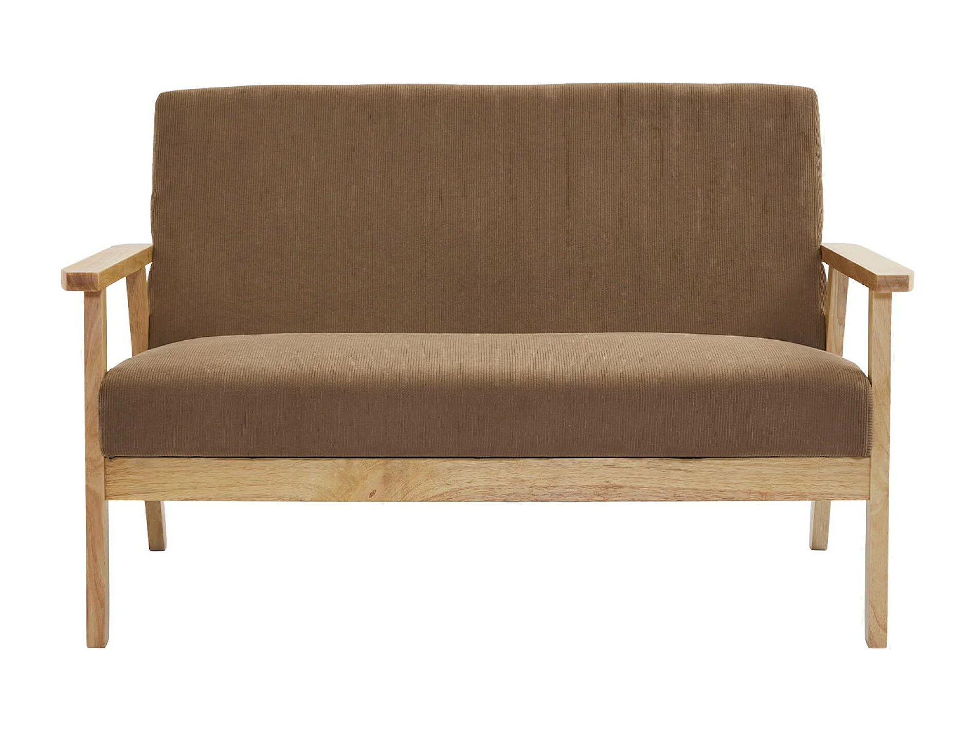 Canapé banquette 2 places + Fauteuil velours côtelé. pieds bois. taupe