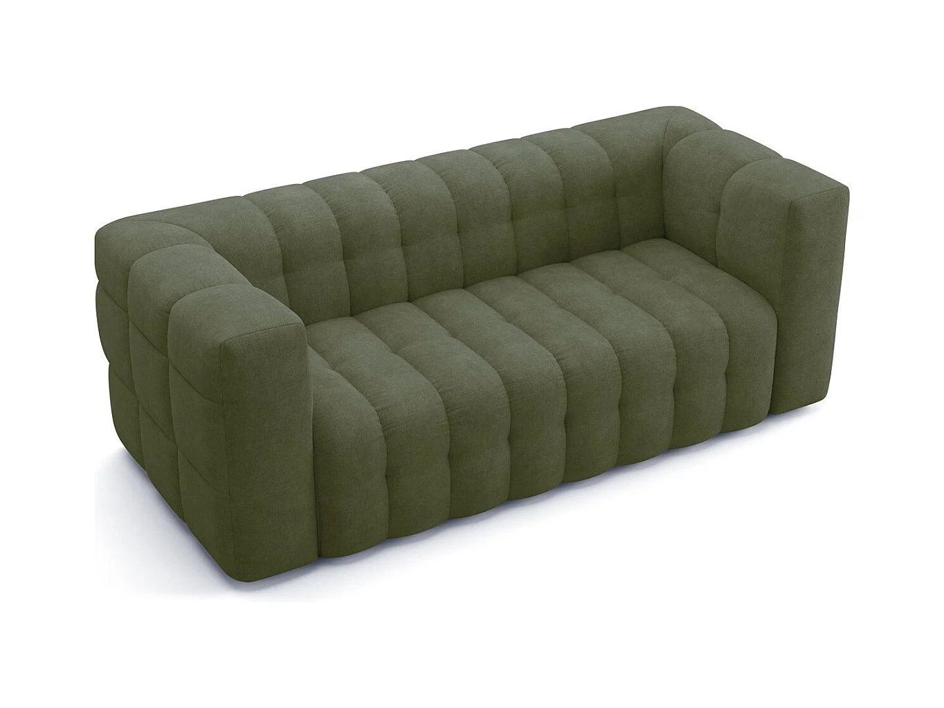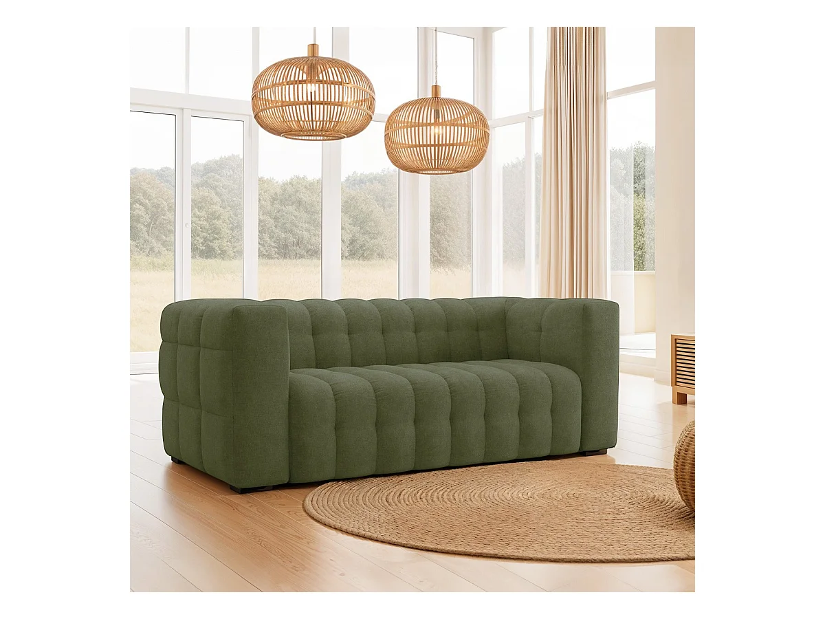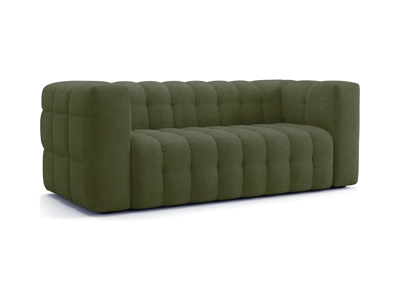 Canapé capitonné 3 places en tissu chenille vert olive - Cester