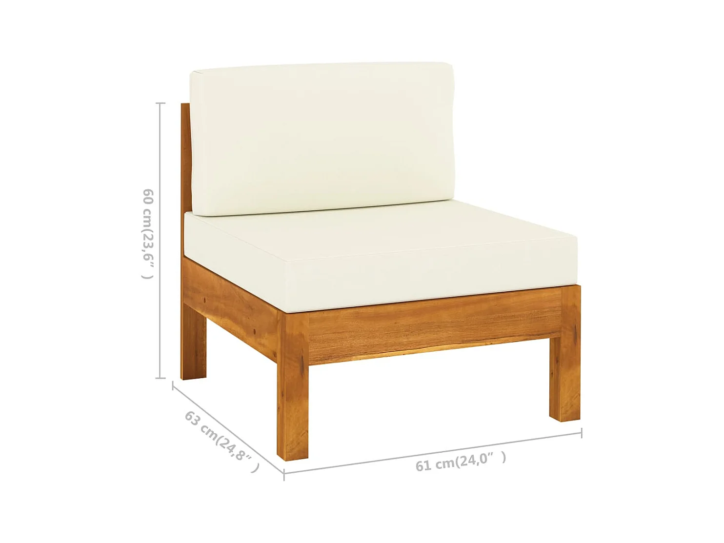 Canapé central avec coussins blanc crème Bois d'acacia solide FR10563