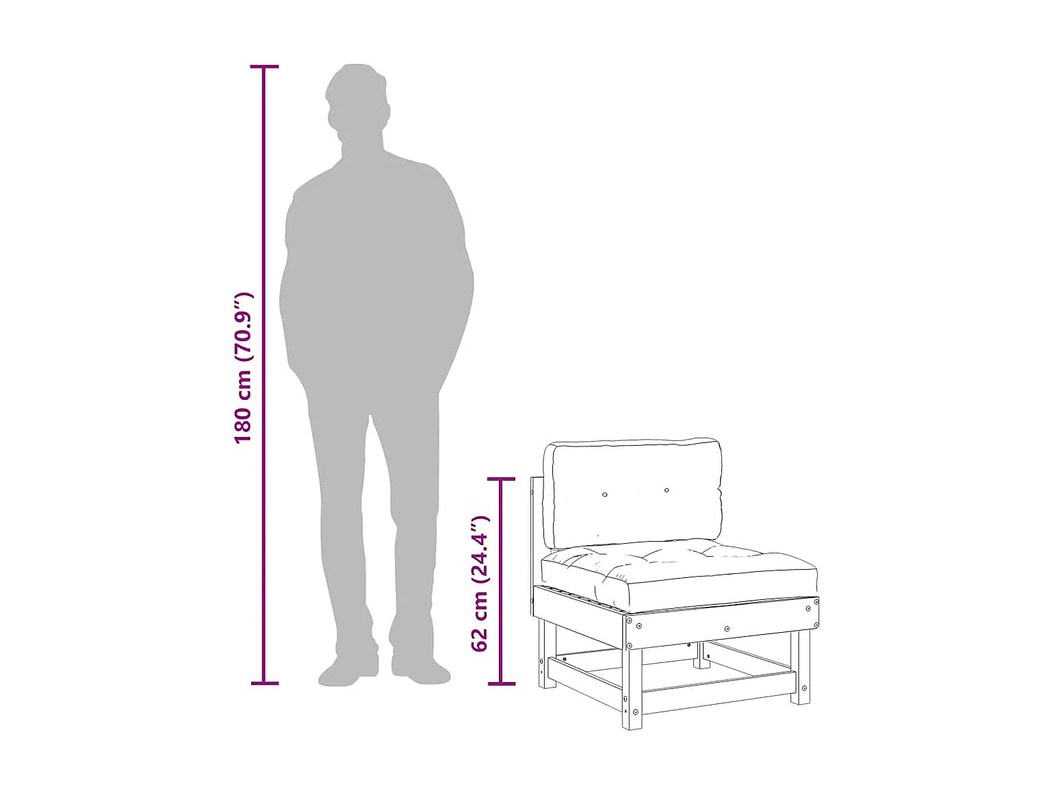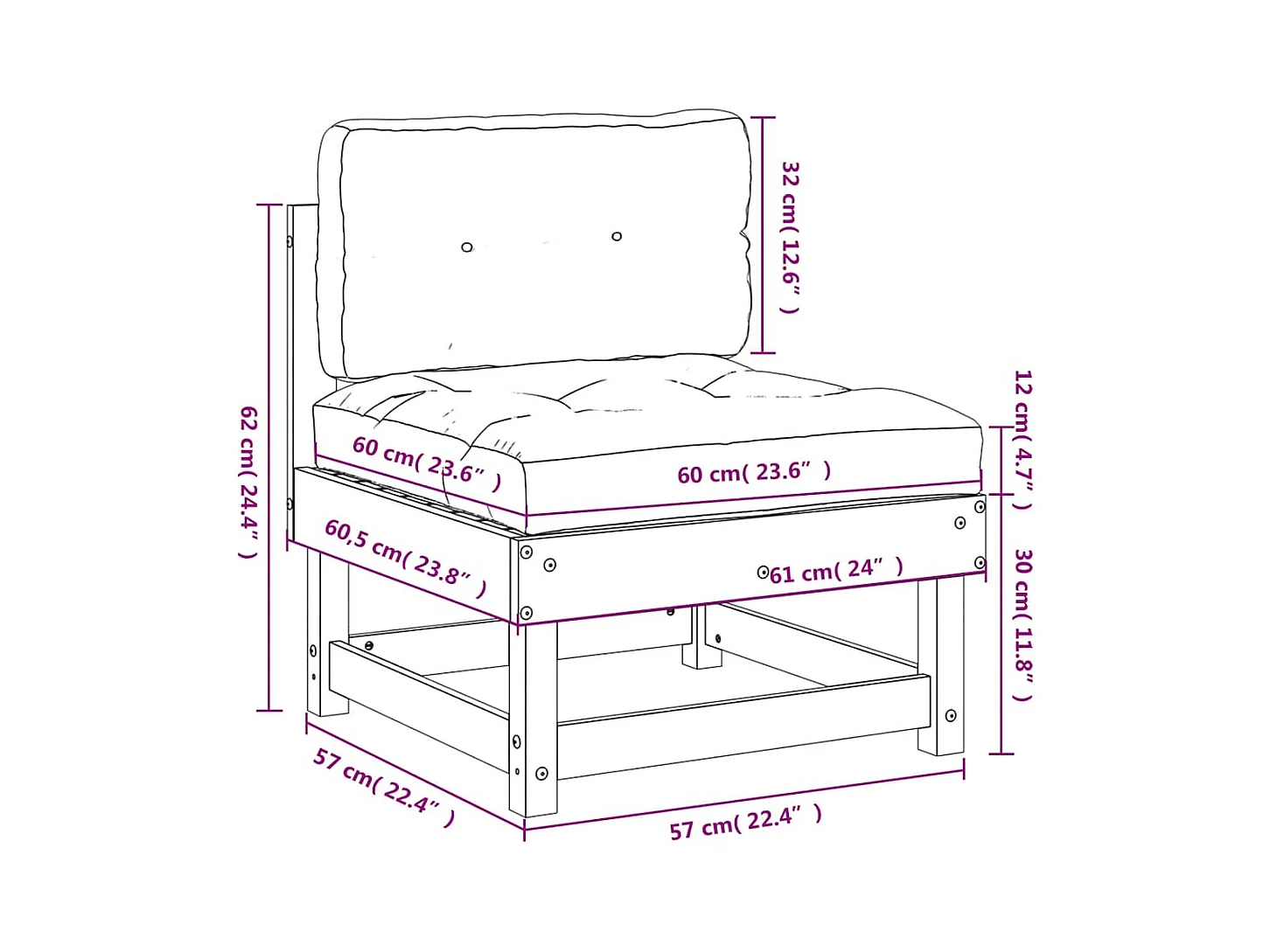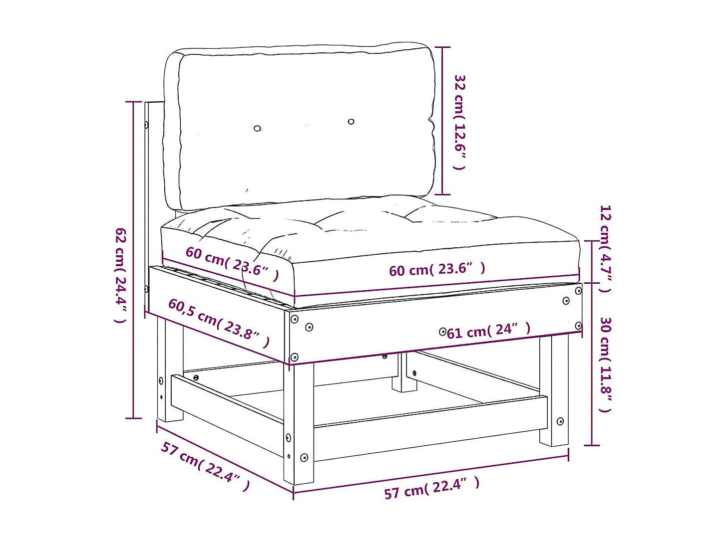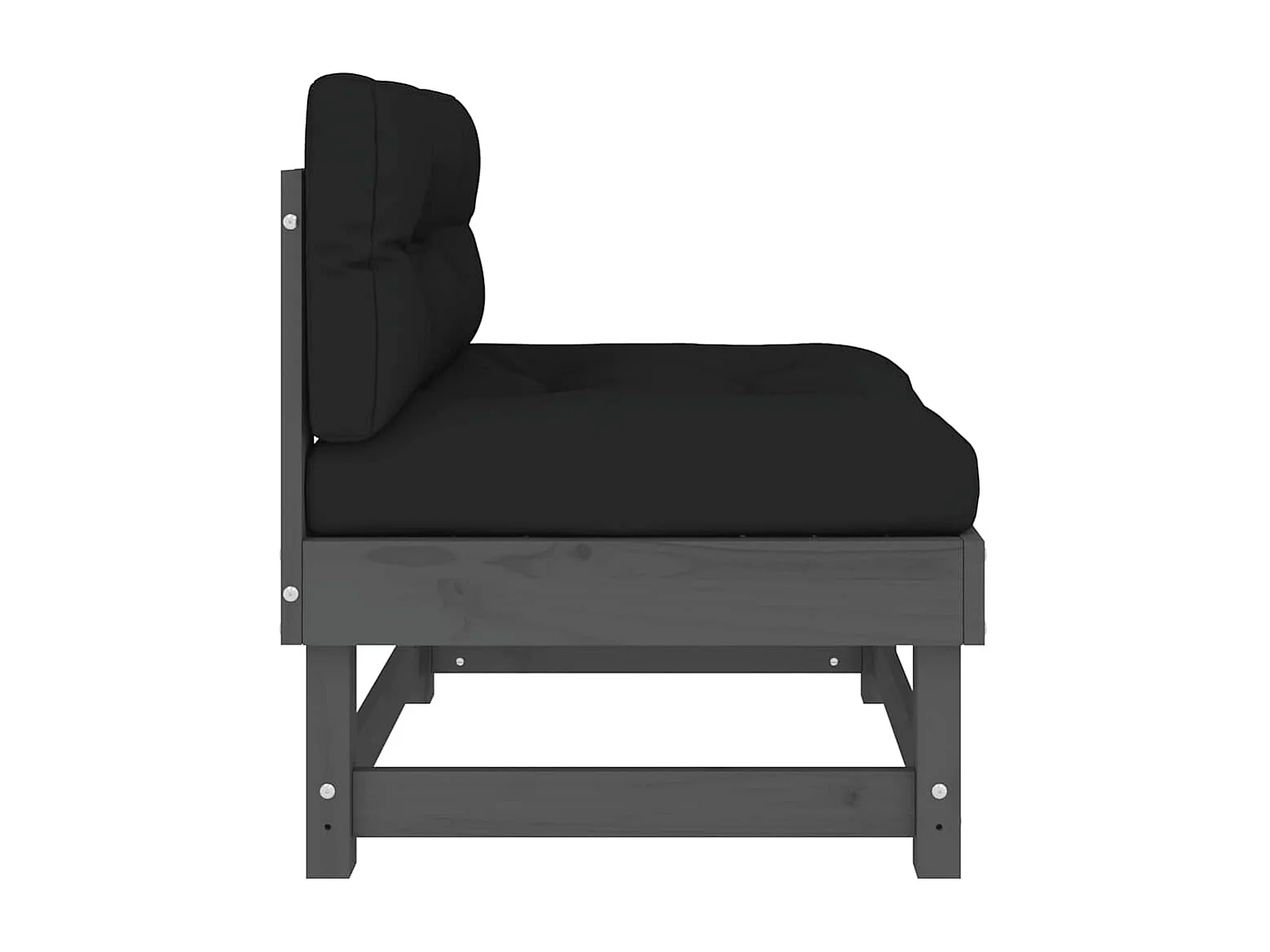 Canapé central de jardin avec coussins gris bois de pin massif PWRS79709
