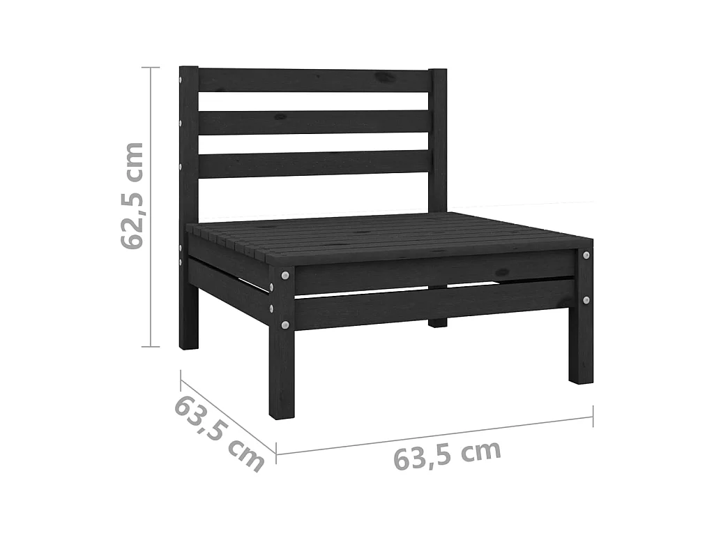 Canapé central de jardin Noir Bois de pin massif