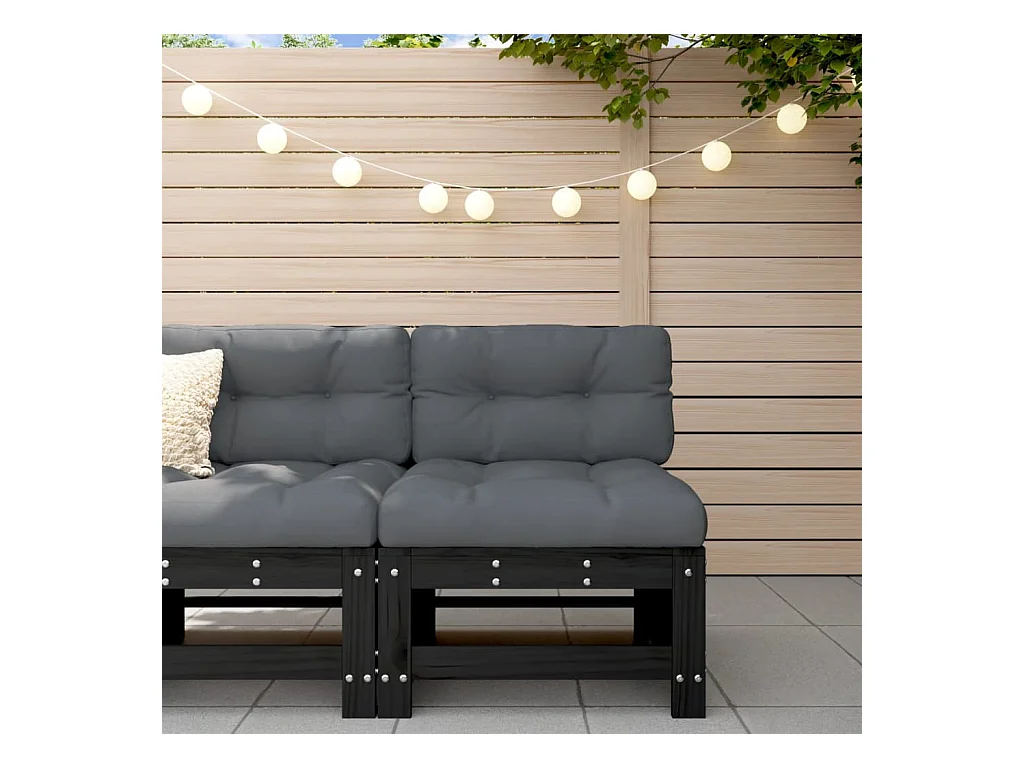 Canapés centraux de jardin 3 pcs noir bois de pin massif