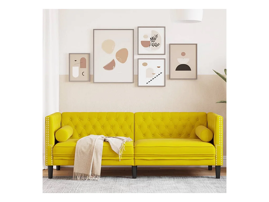 Canapé Chesterfield 3 places | Sofa pour Salon avec traversins jaune velours