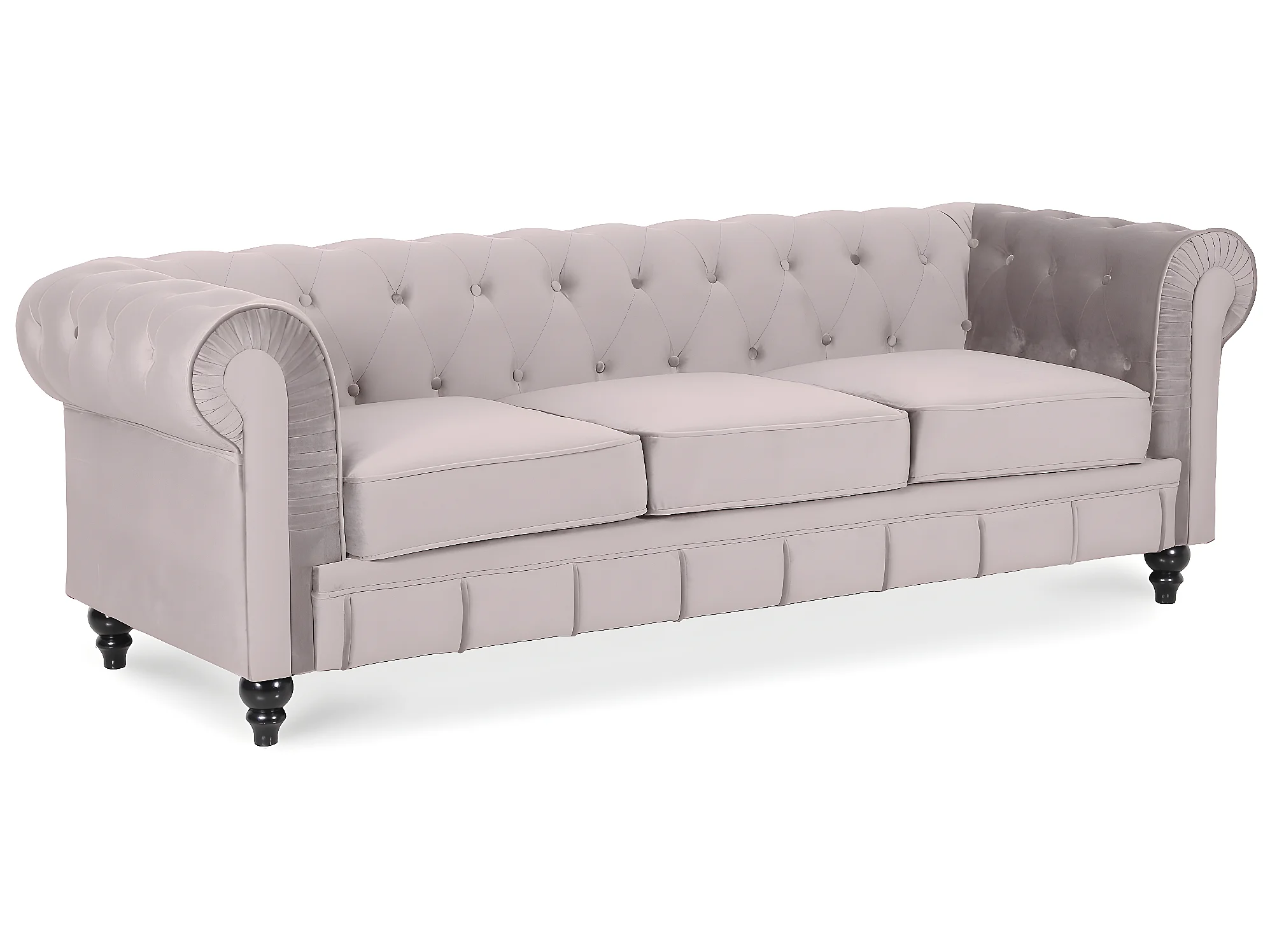 Canape Chesterfield Velours 3 Places Altesse Taupe