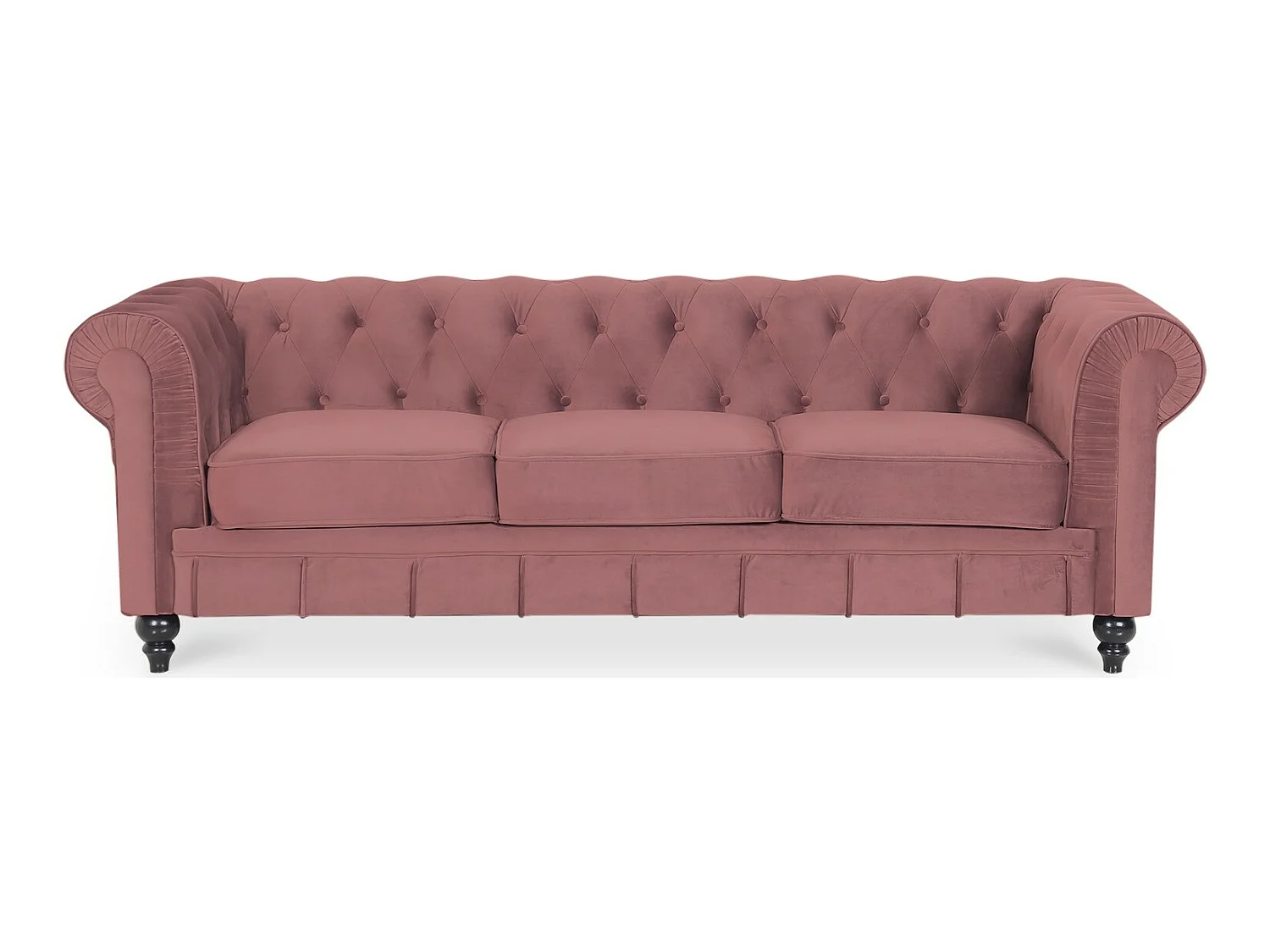 Canape Chesterfield Velours 3 Places Altesse Vieux Rose
