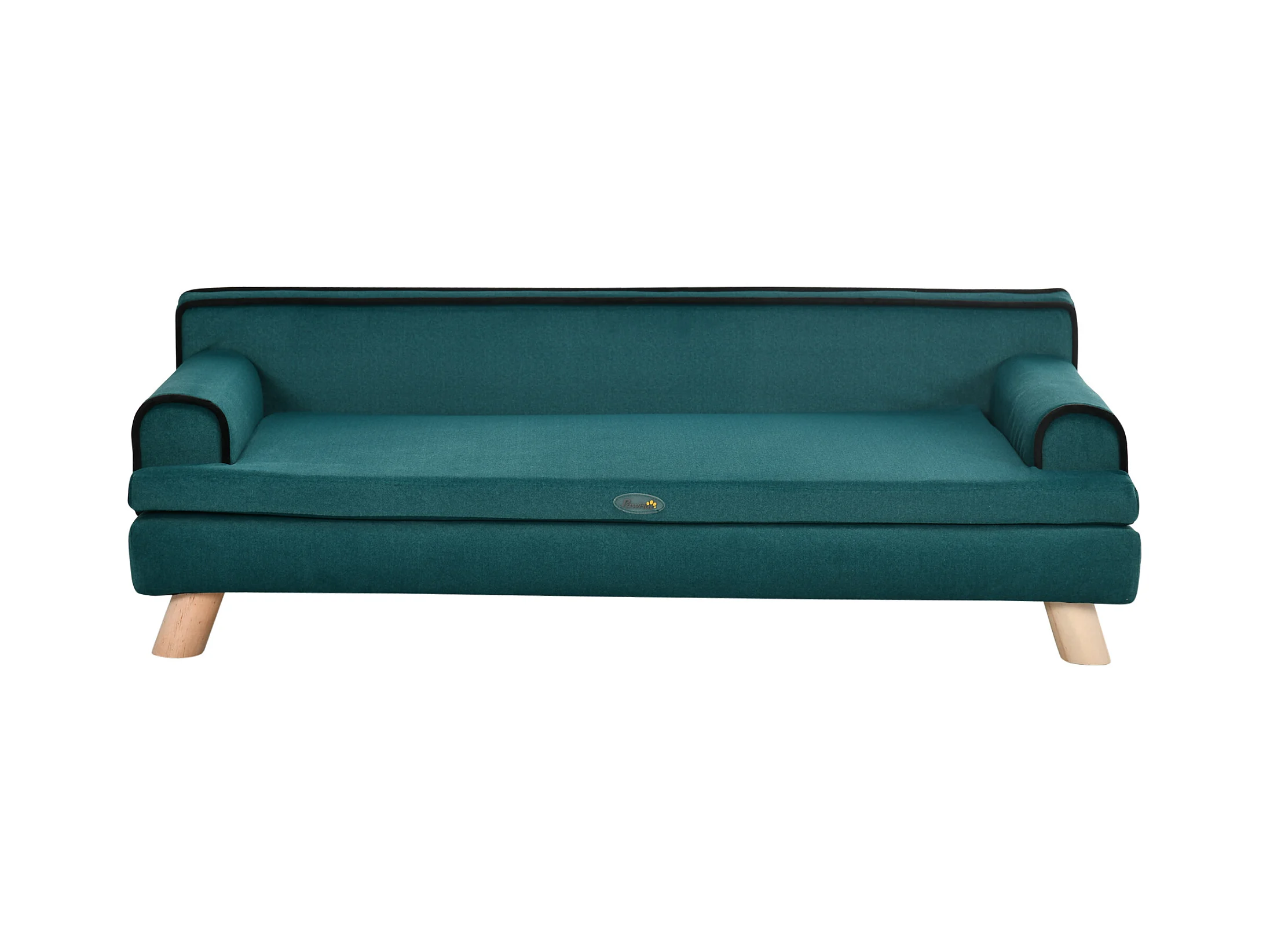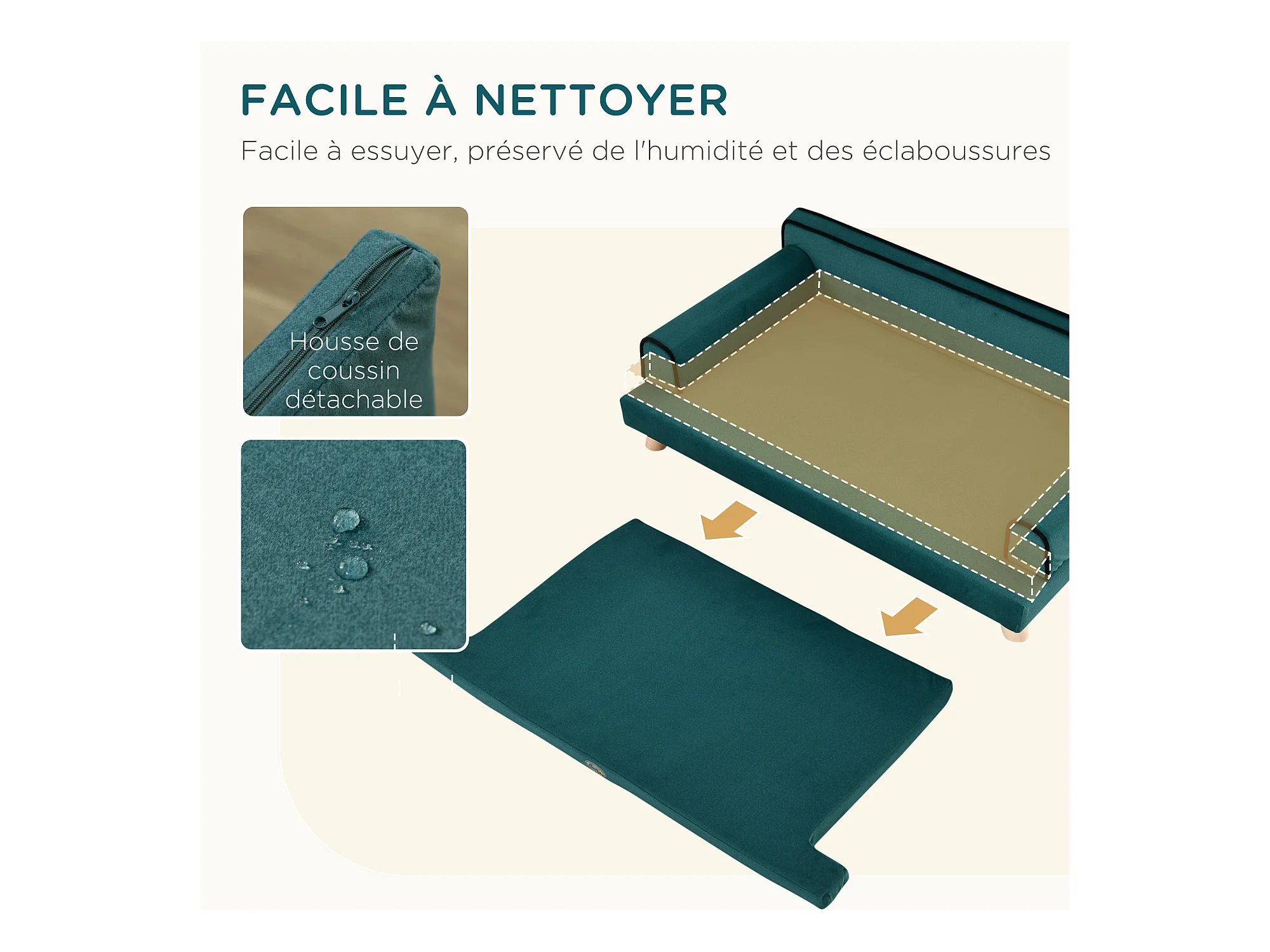 Canapé chien lit pour chien design scandinave coussin moelleux piètement bois dim. 100L x 62l x 32H cm polyester bleu canard