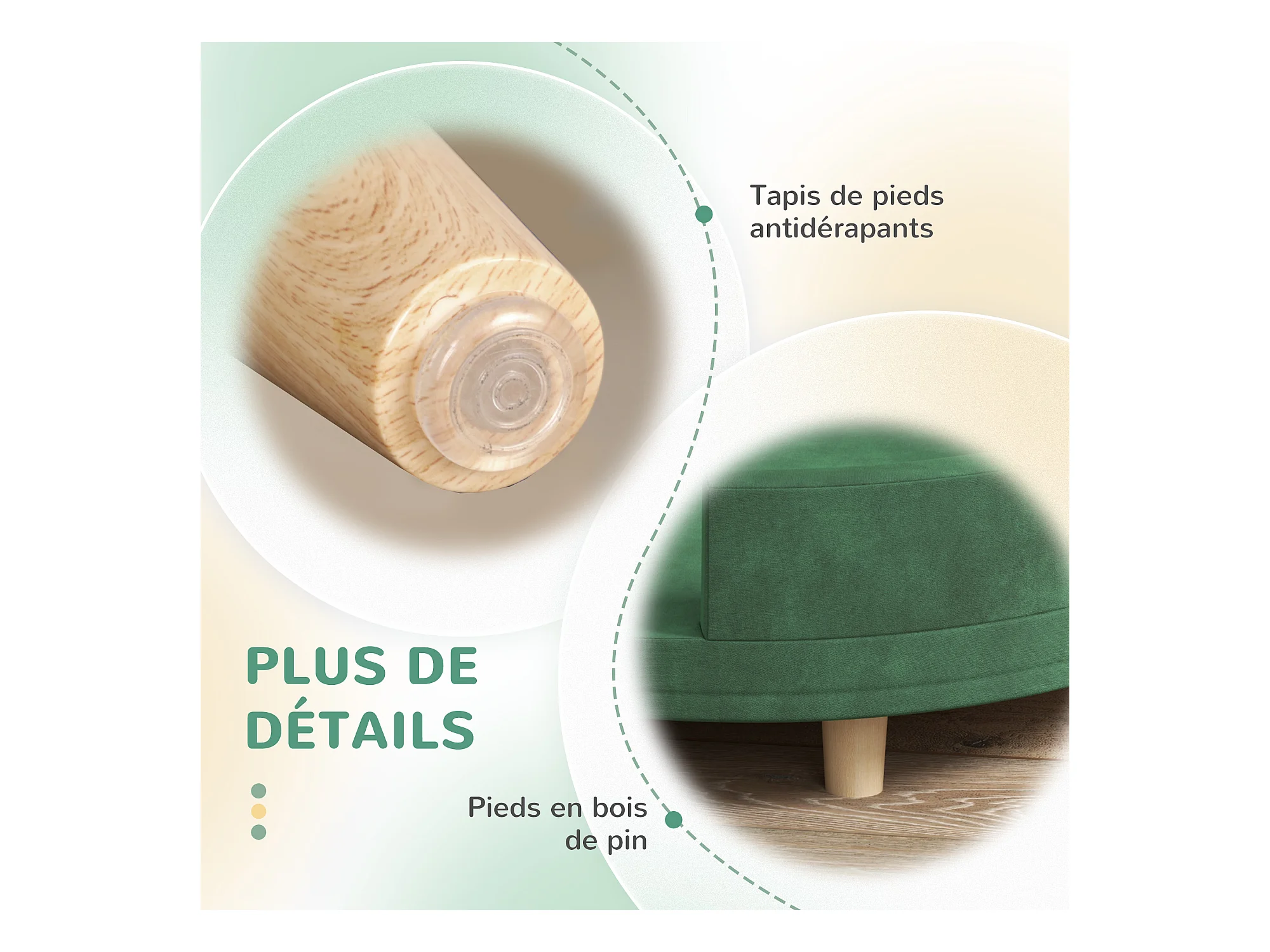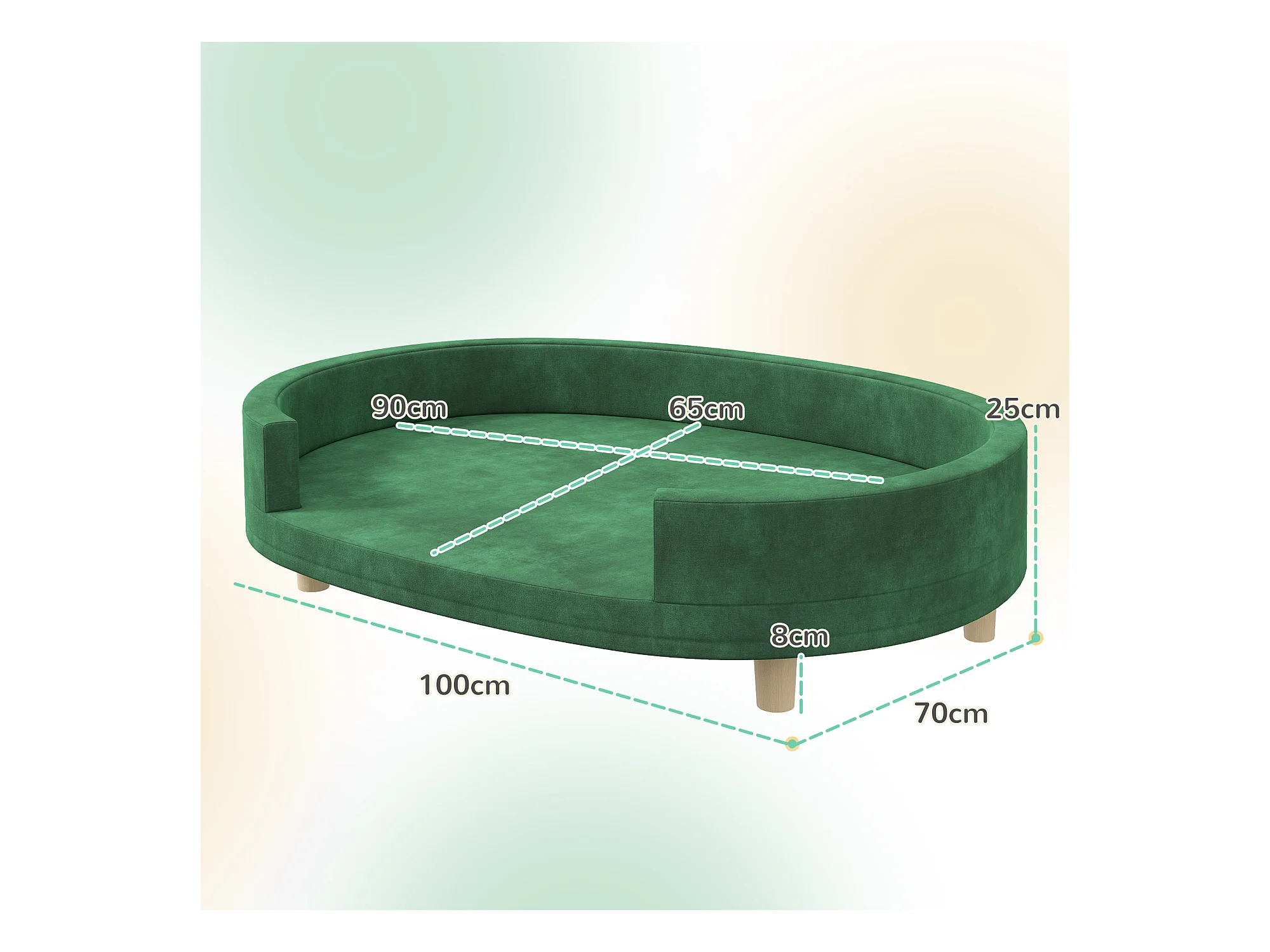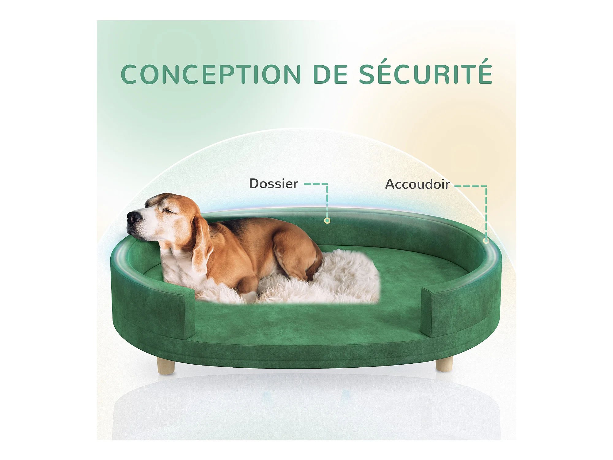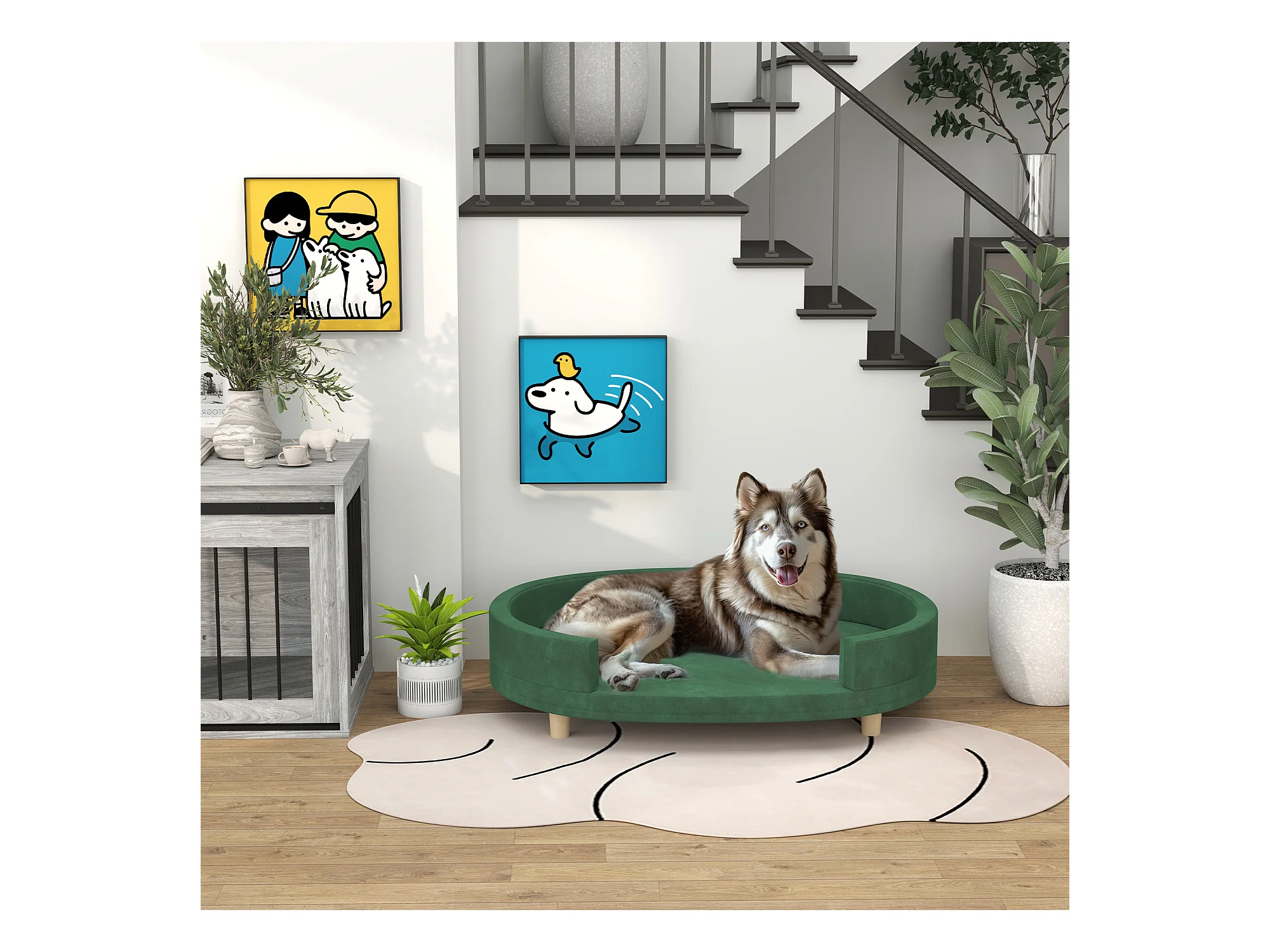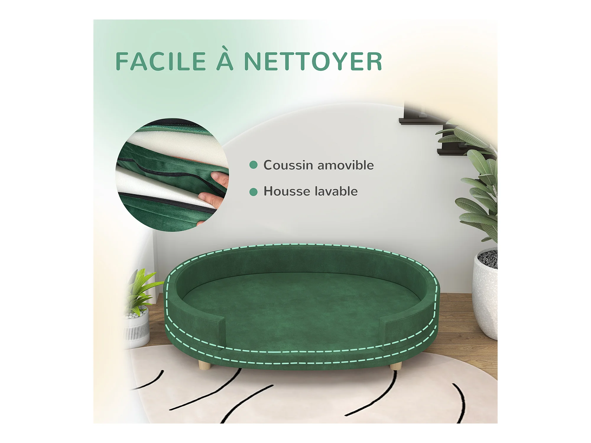 Canapé chien style nordique grande taille dim. 100L x 70l x 25H cm - coussin amovible - piètement bois velours vert