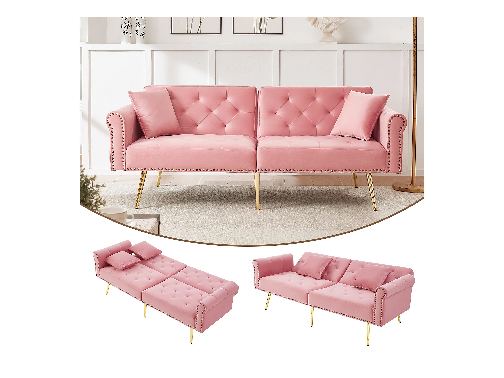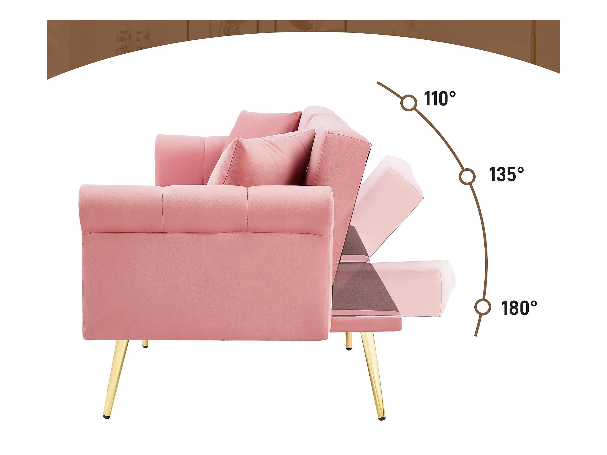 Canapé contemporain 2 places - Velours - Dossier réglable sur 3 niveaux - Rose