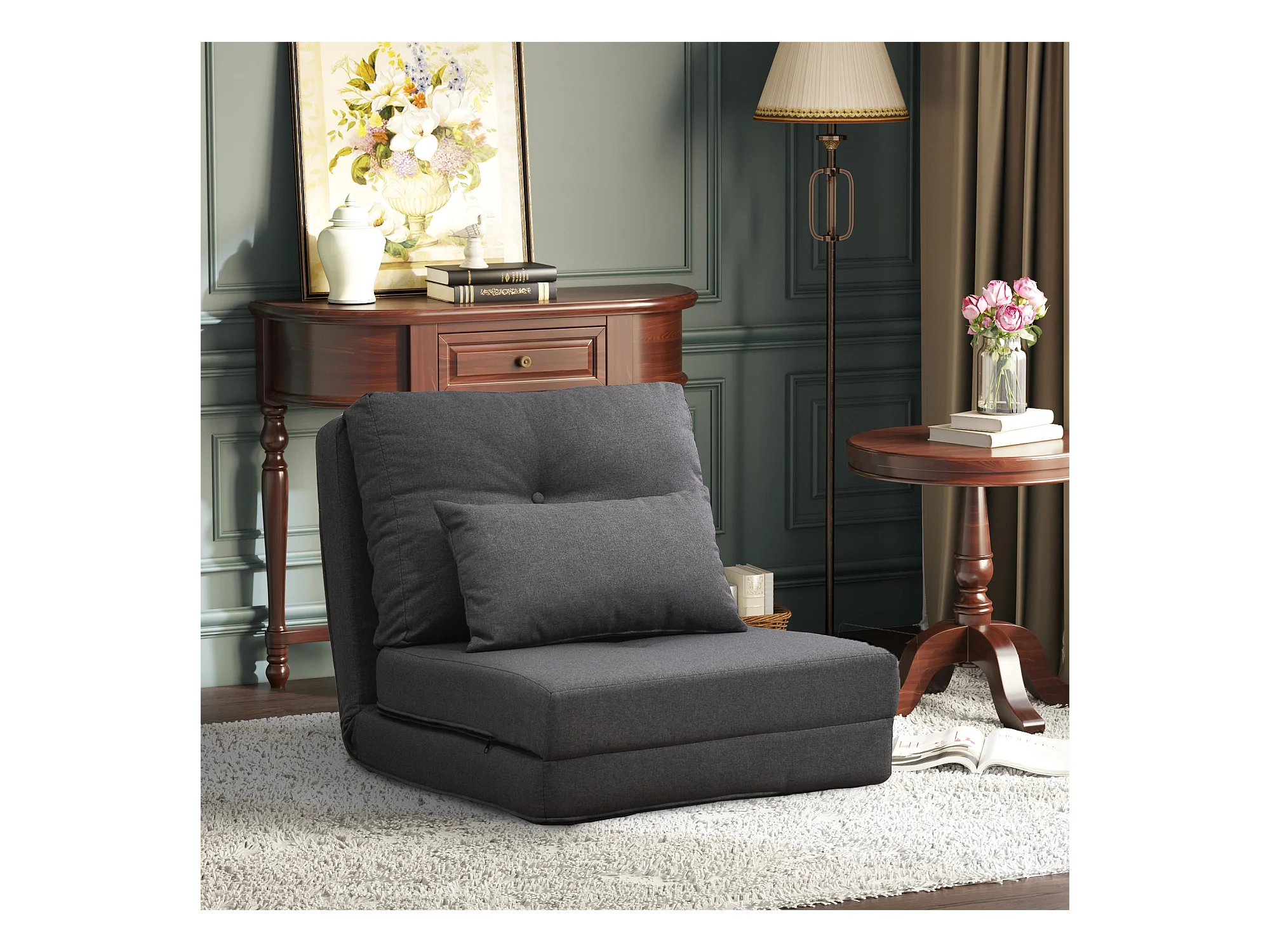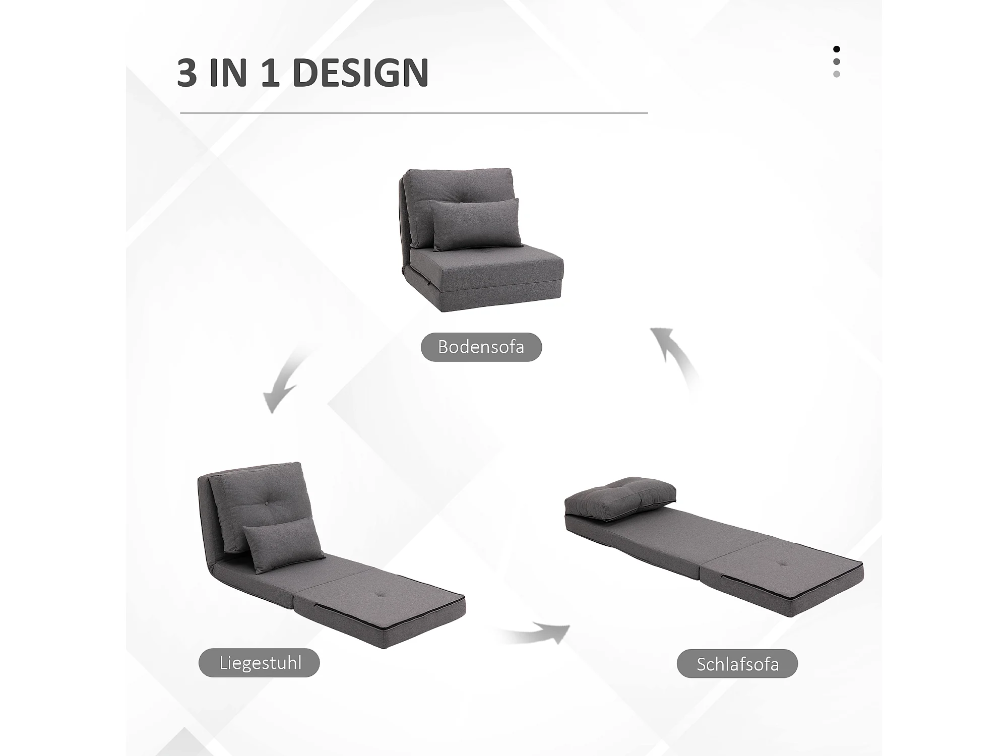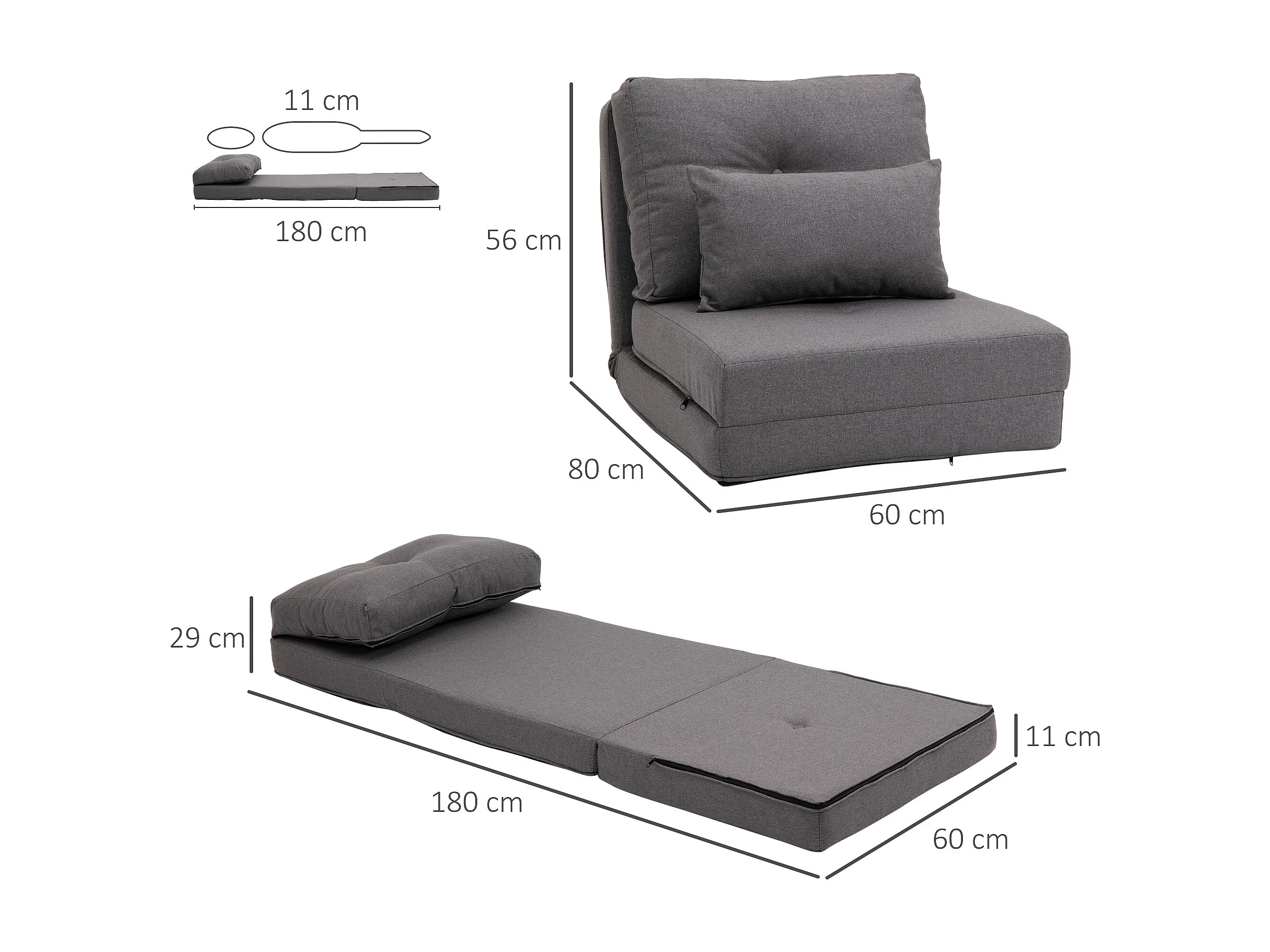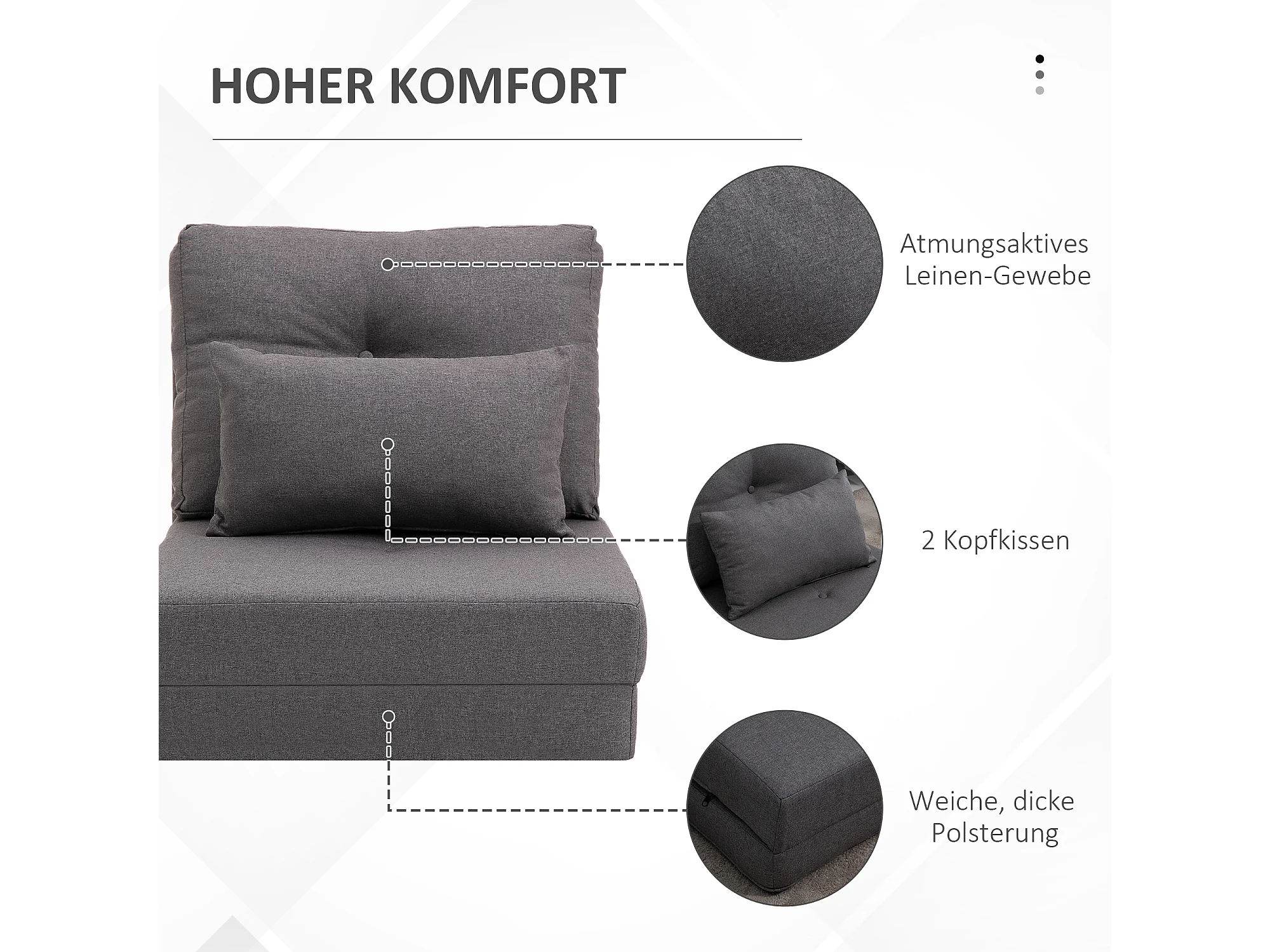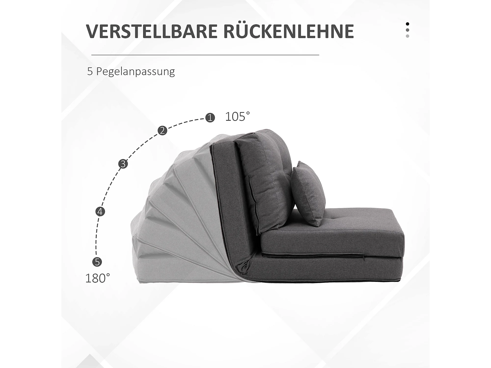 Canapé convertible 2-en-1 avec dossier réglable, housse en lin, gris foncé (80x60x56cm)