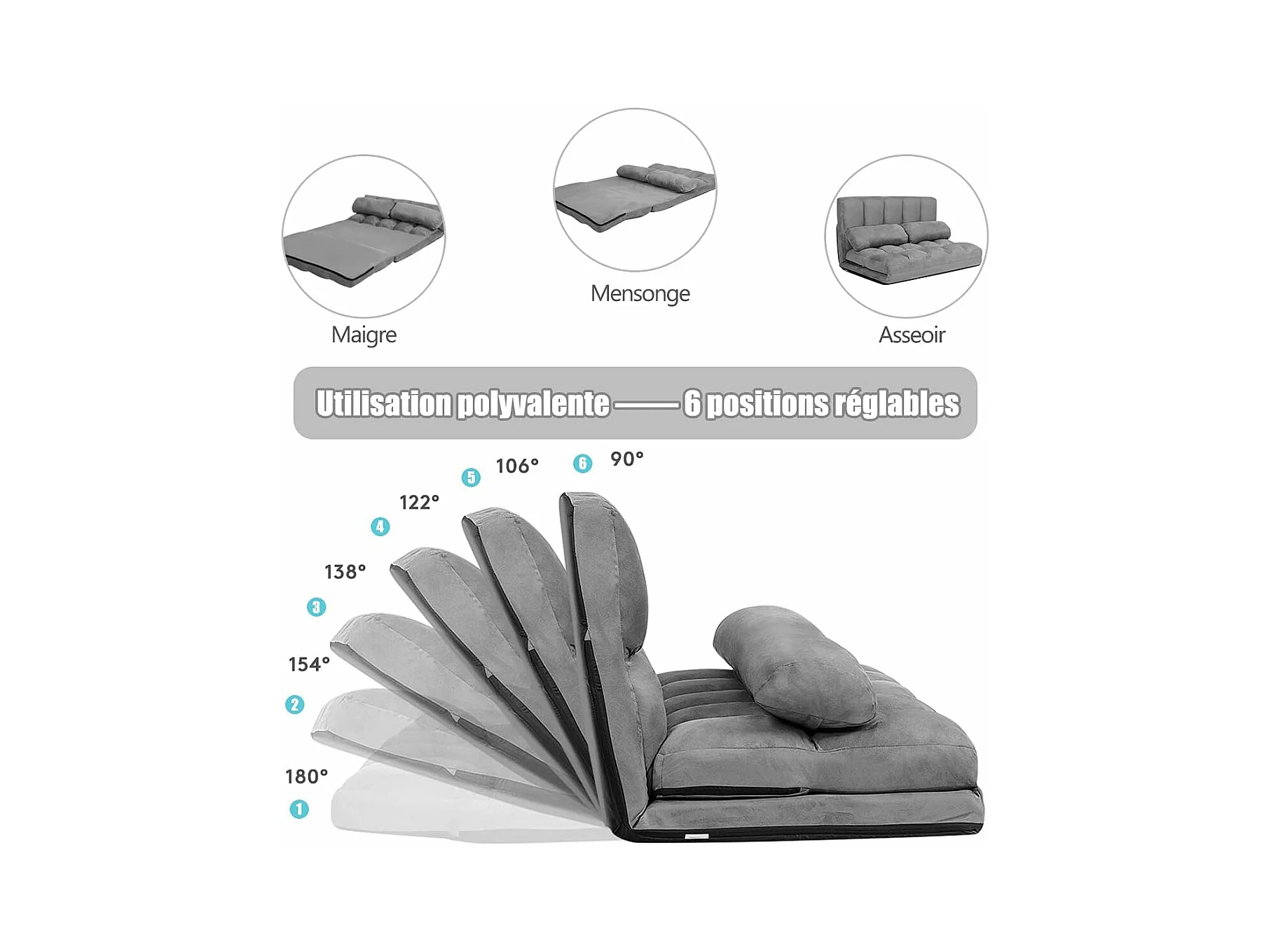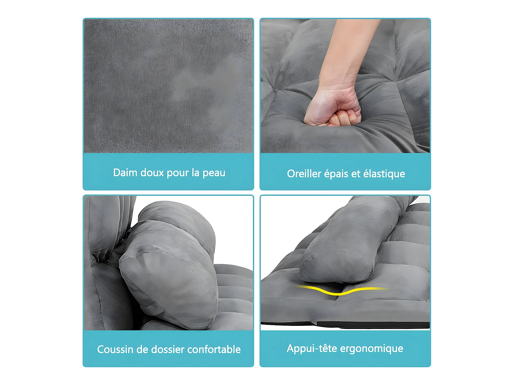 Canapé convertible 2 place 113 x 180 cm dossier réglable à 6 positions housse