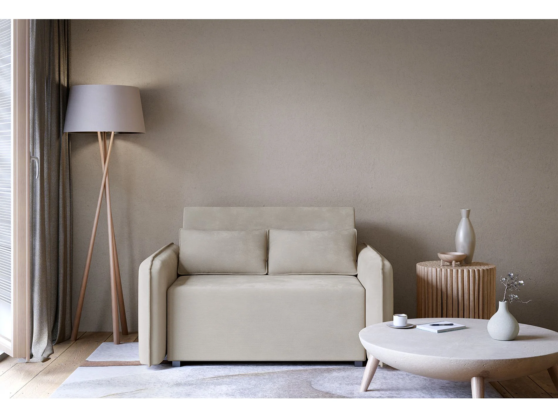 Canapé convertible 2 places – coffre – chenille hydrophobe – beige – DUELIA