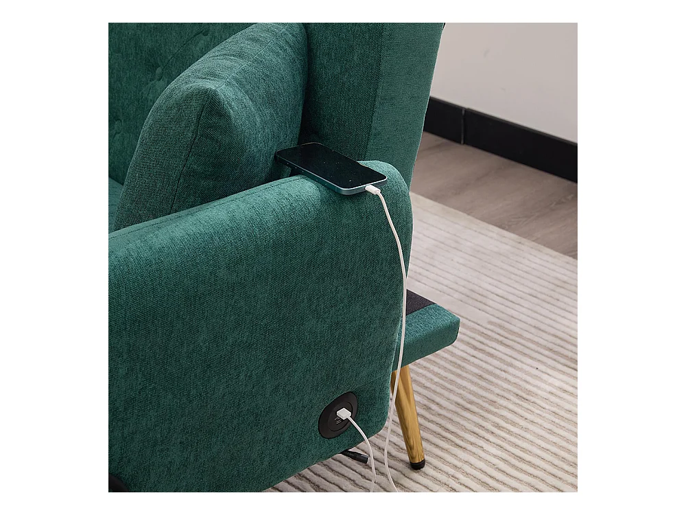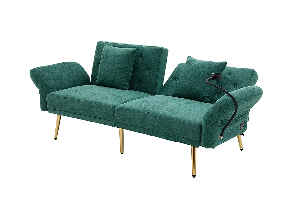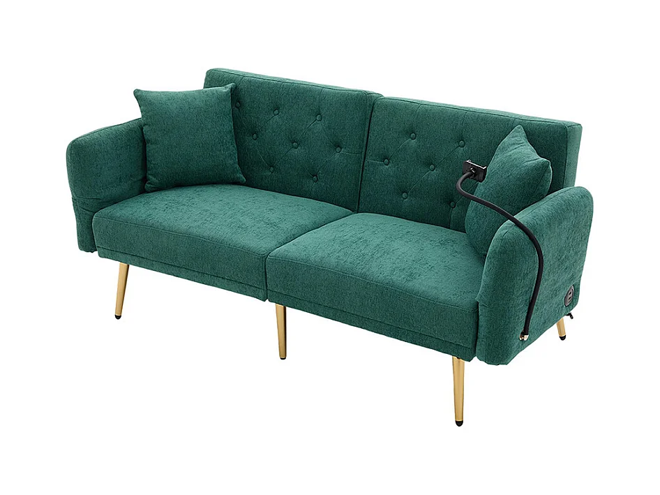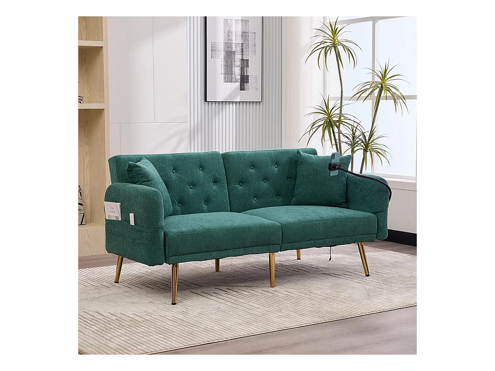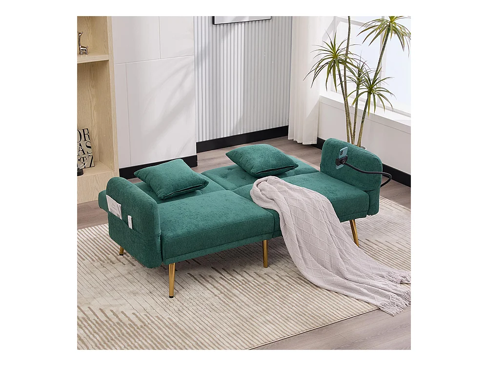 Canapé convertible 2 places dossier ajustable USB poche support téléphone pieds métal pliant siège lit dappoint Émeraude