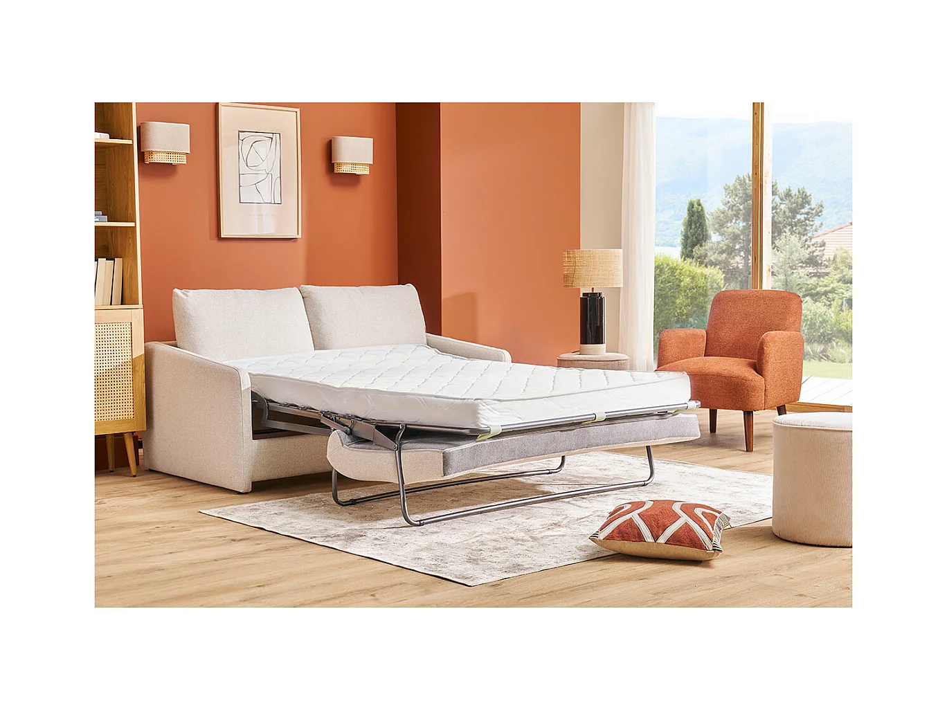 Canapé convertible 2 places en tissu beige crème PAULIN