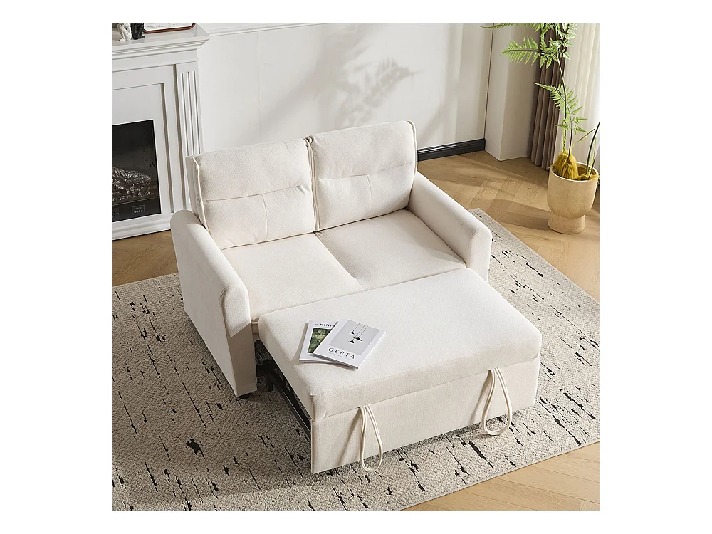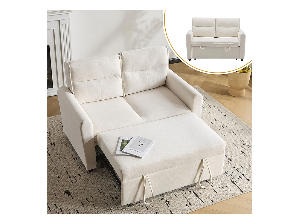 Canapé convertible 2 places moderne avec fonction couchette et dossier réglable grands coussins de dossier inclus beige clair