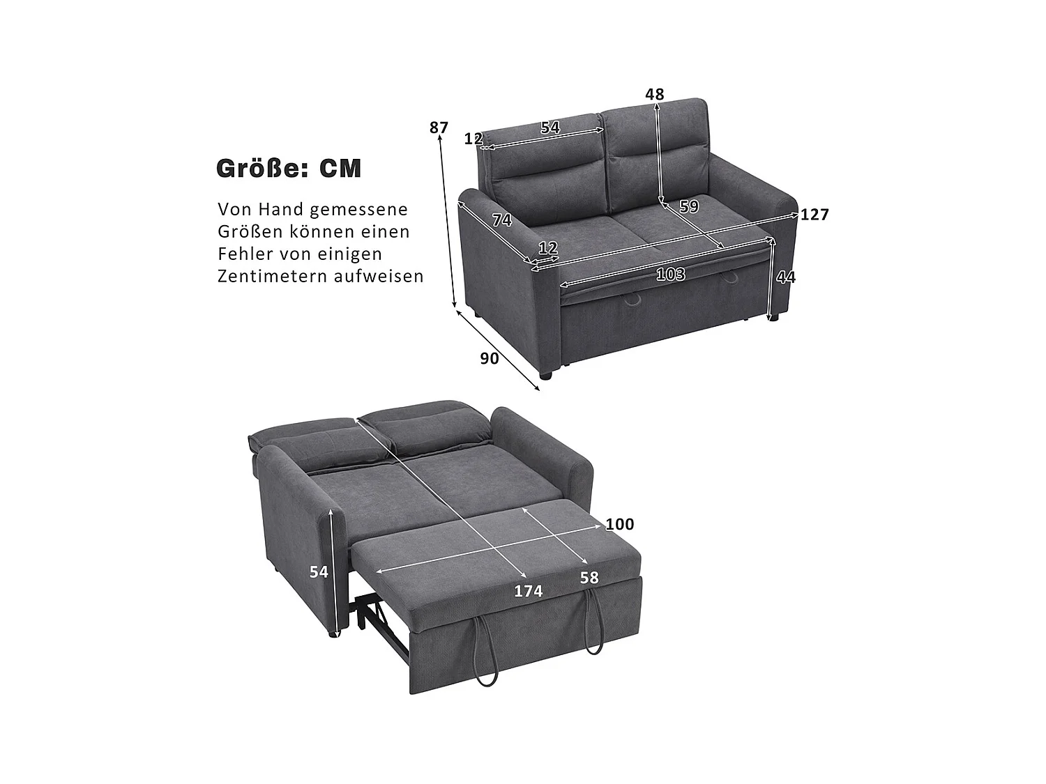 Canapé convertible 2 places moderne avec fonction couchette et dossier réglable grands coussins de dossier inclus gris antique