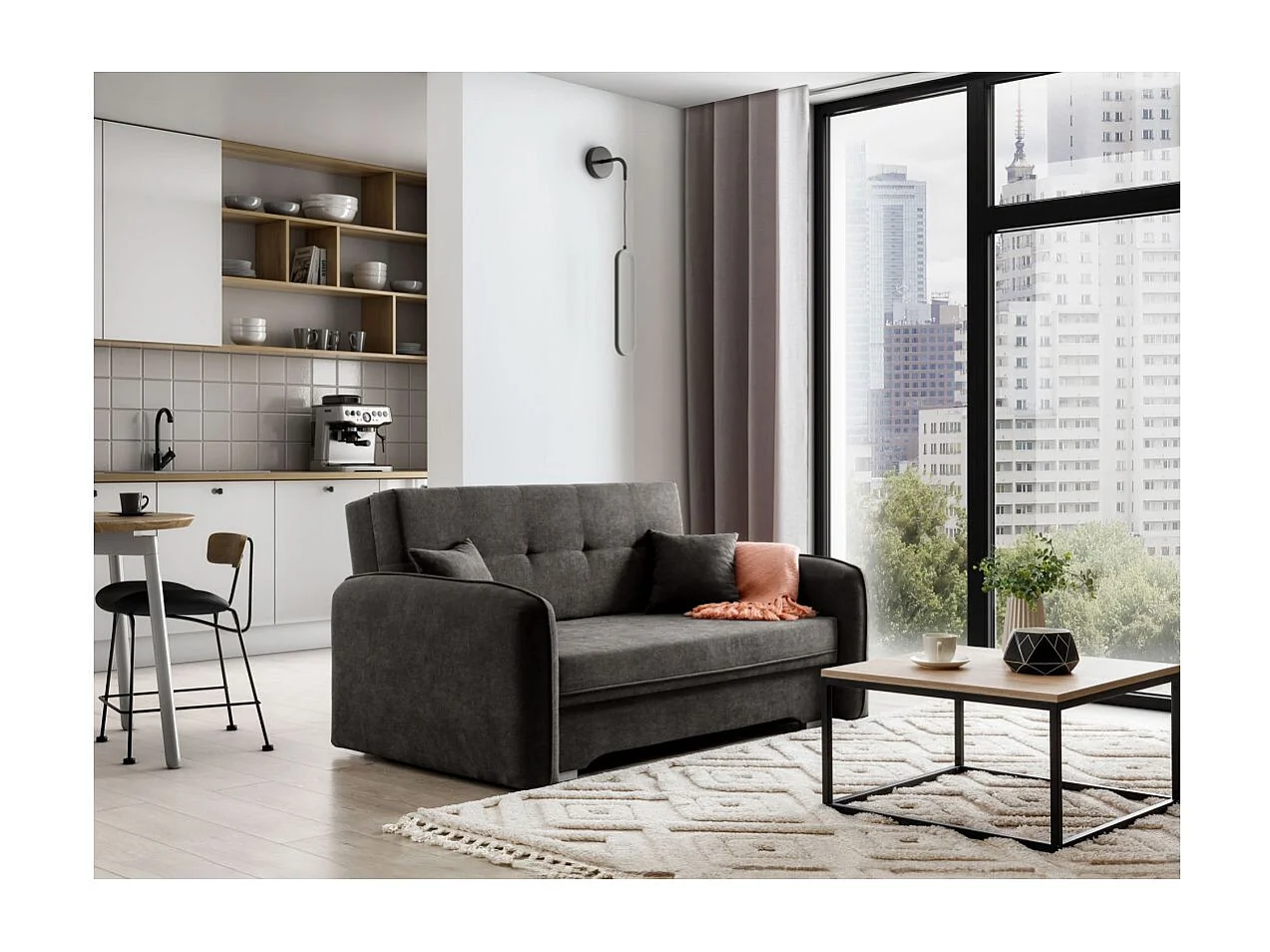 Canapé convertible 2 places SORAYA en tissu - Gris anthracite