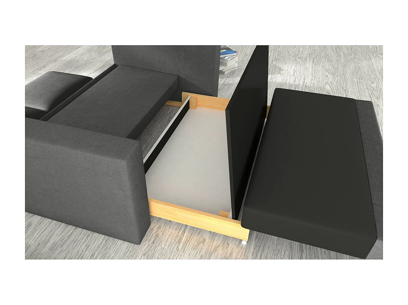 Canapé convertible 2 places ZORA en tissu - Gris anthracite