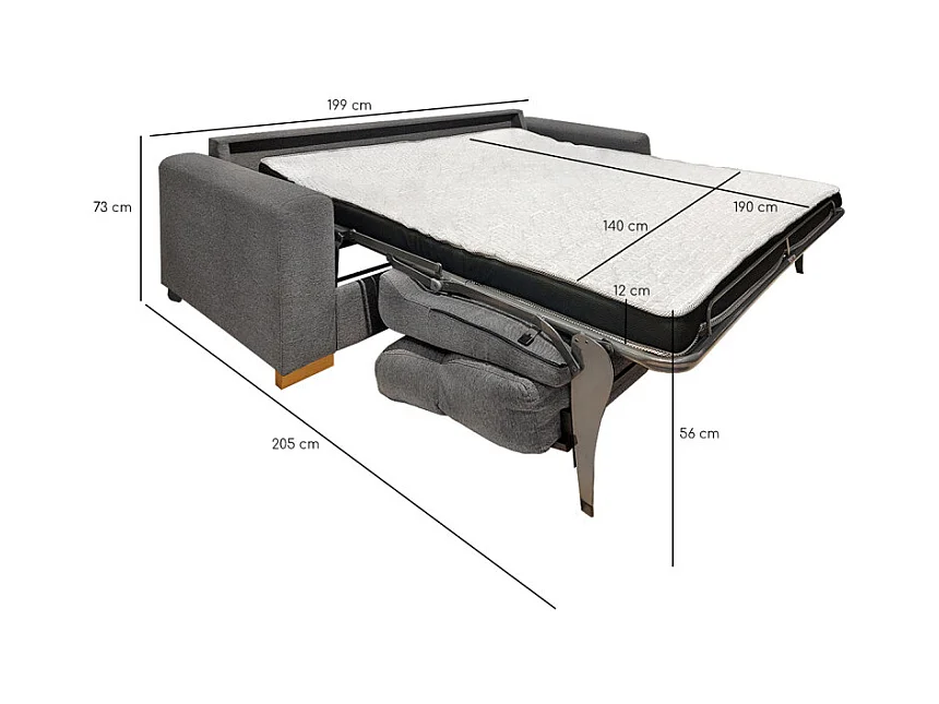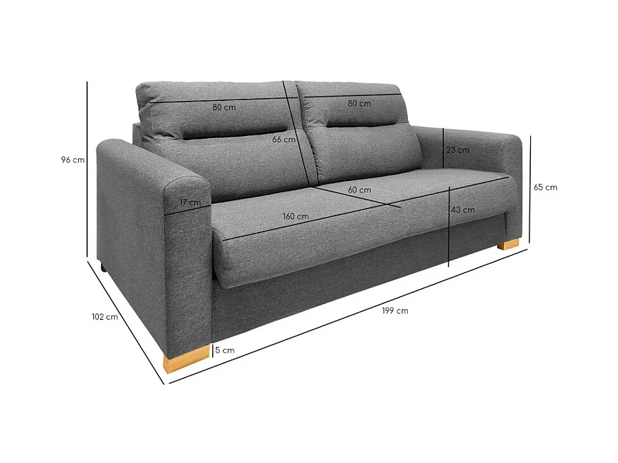 Canapé convertible 2p tissu gris chiné couchage 140x190 cm - VIGO