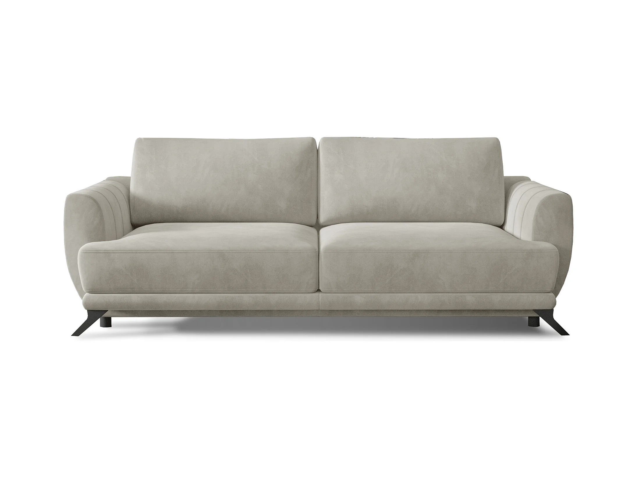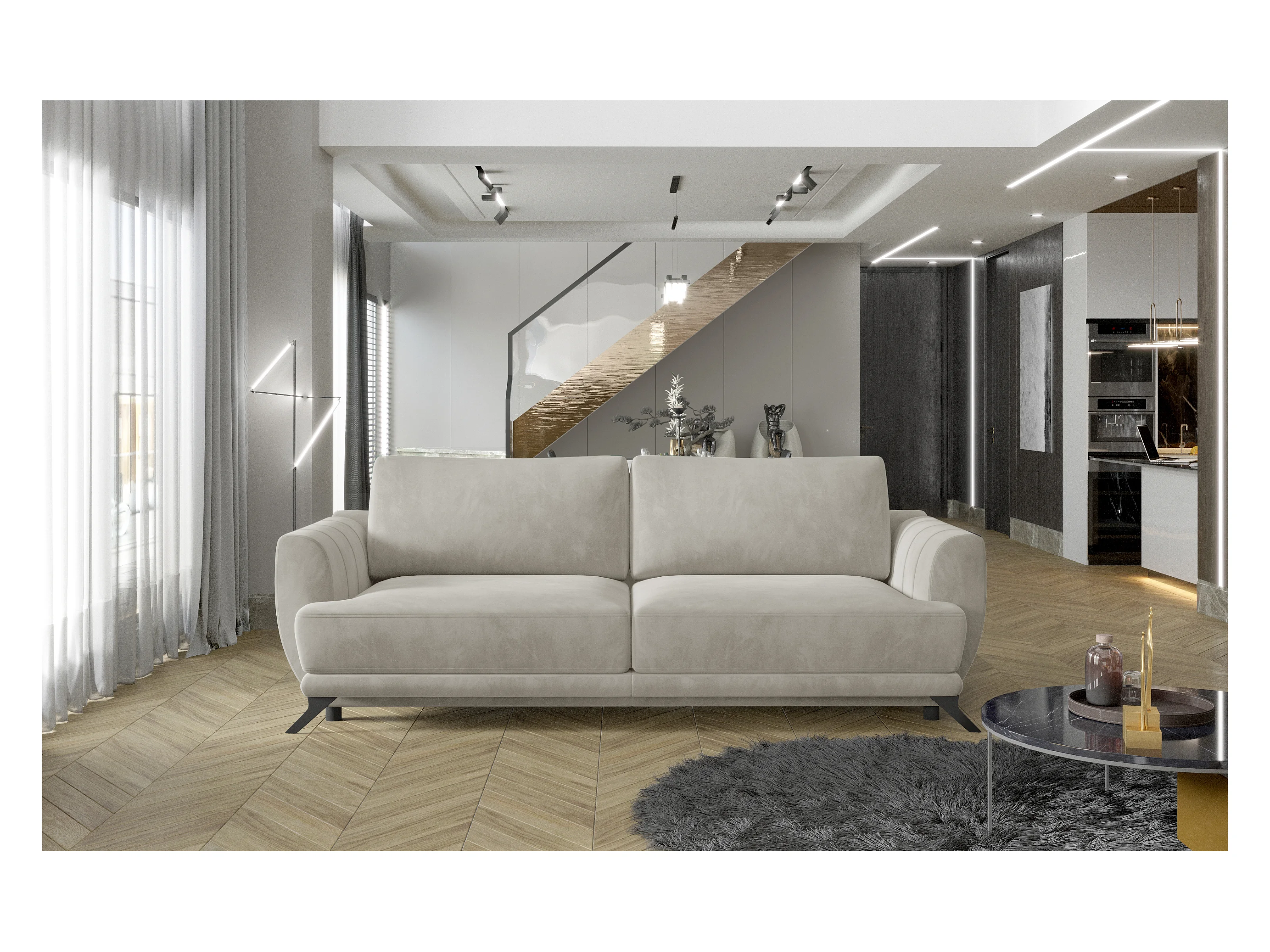 Canapé convertible 3-4 places velours beige clair et pieds métal noir Zora 250cm