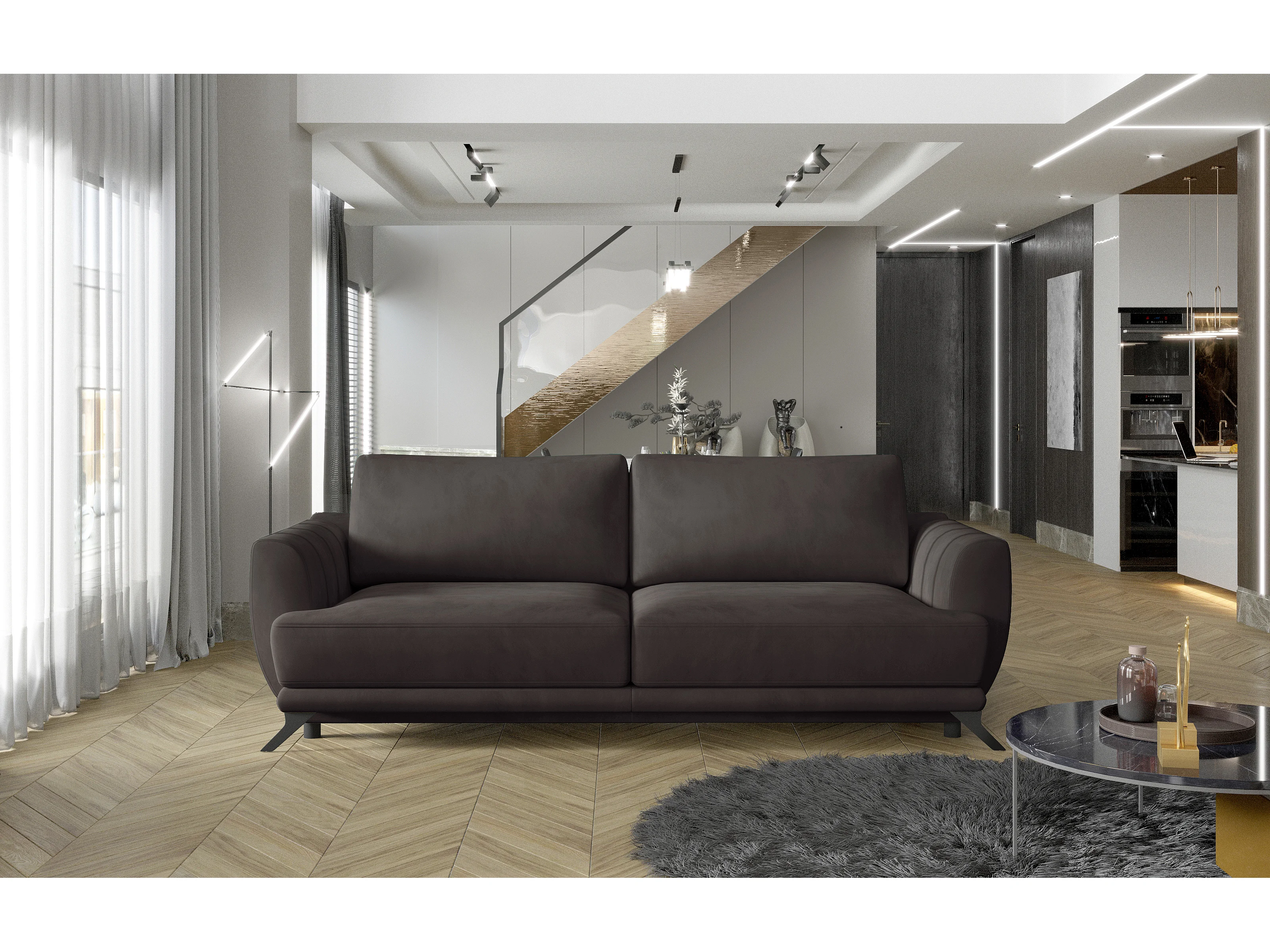 Canapé convertible 3-4 places velours marron et pieds métal noir Zora 250cm