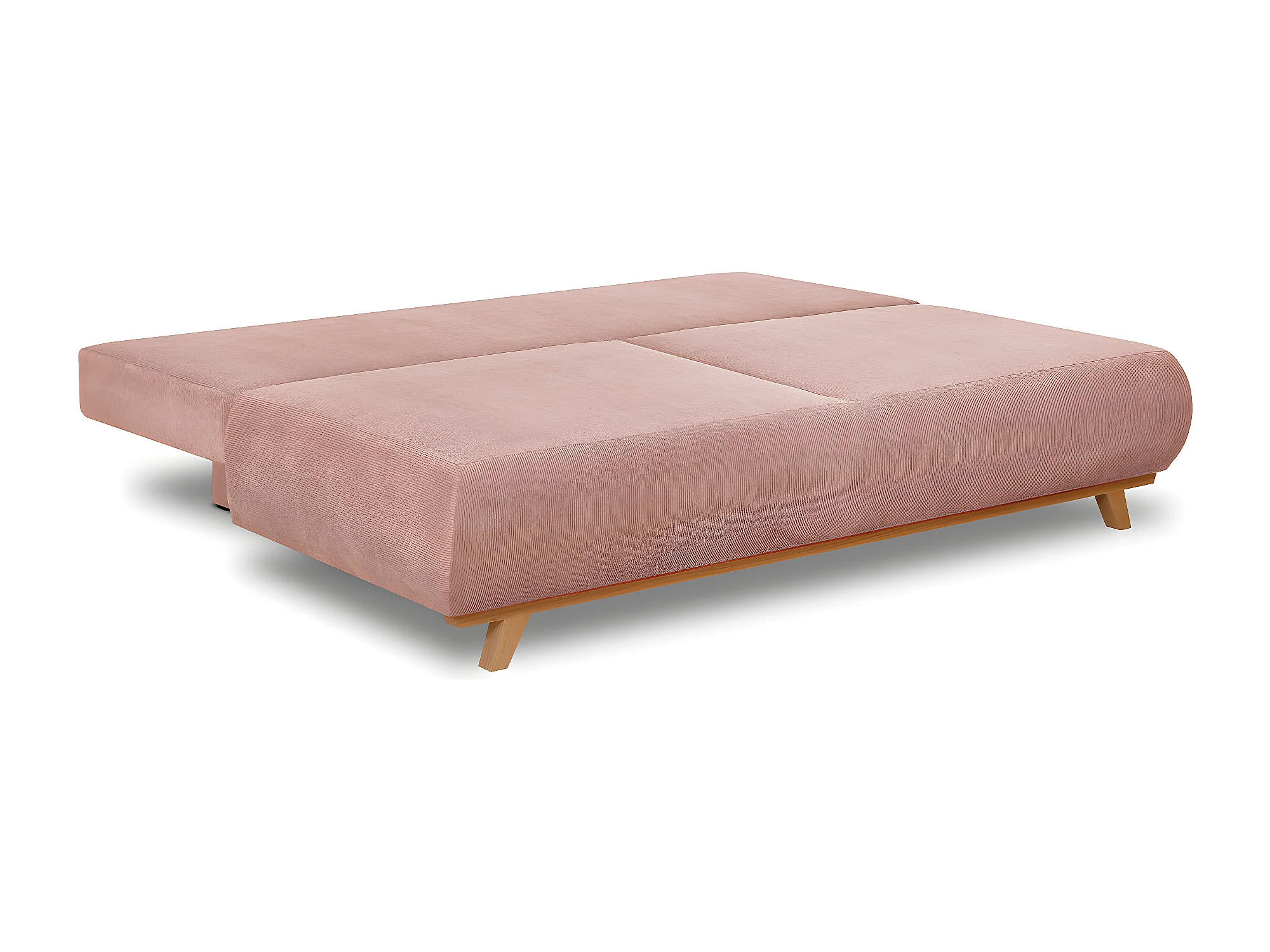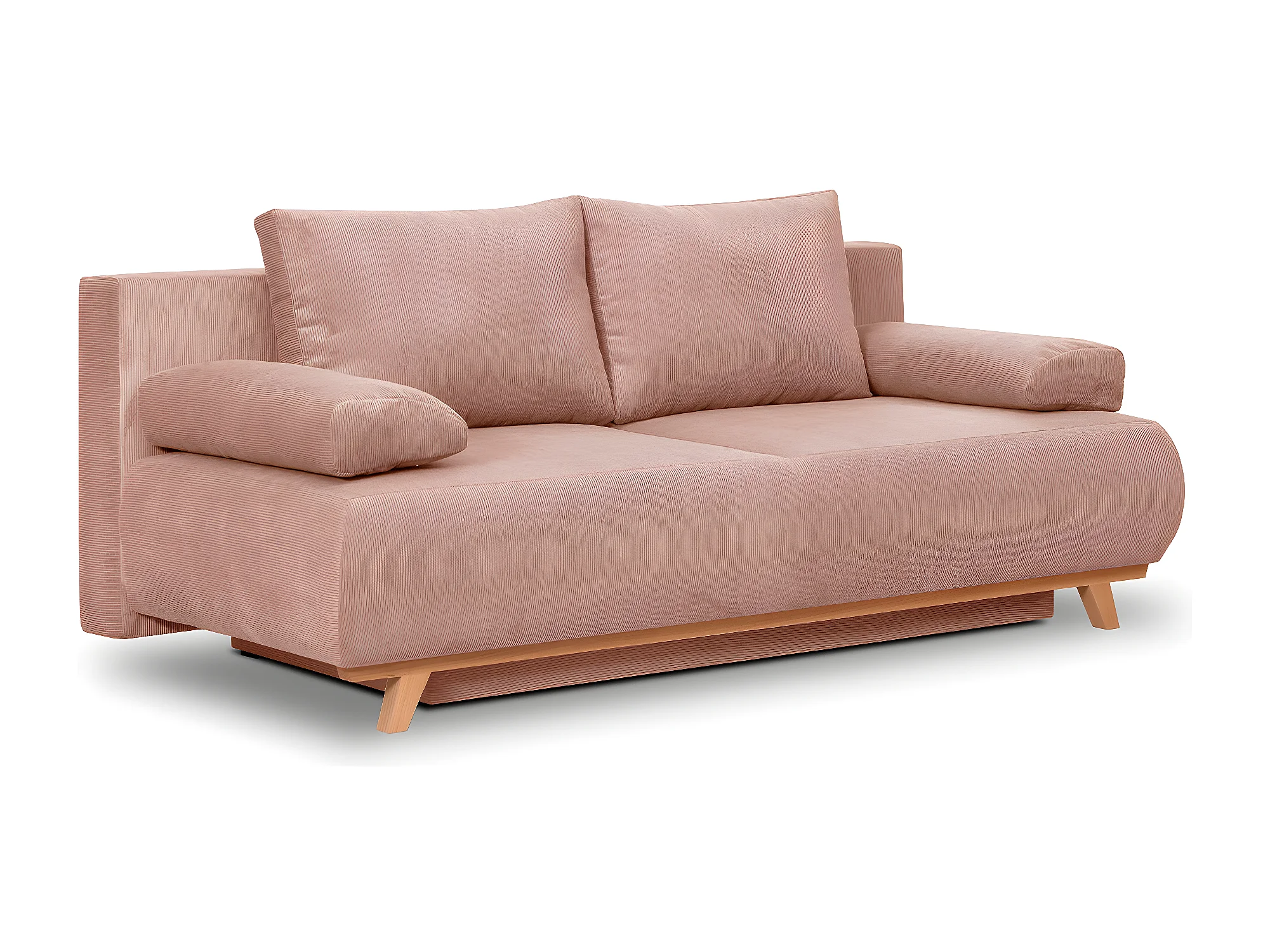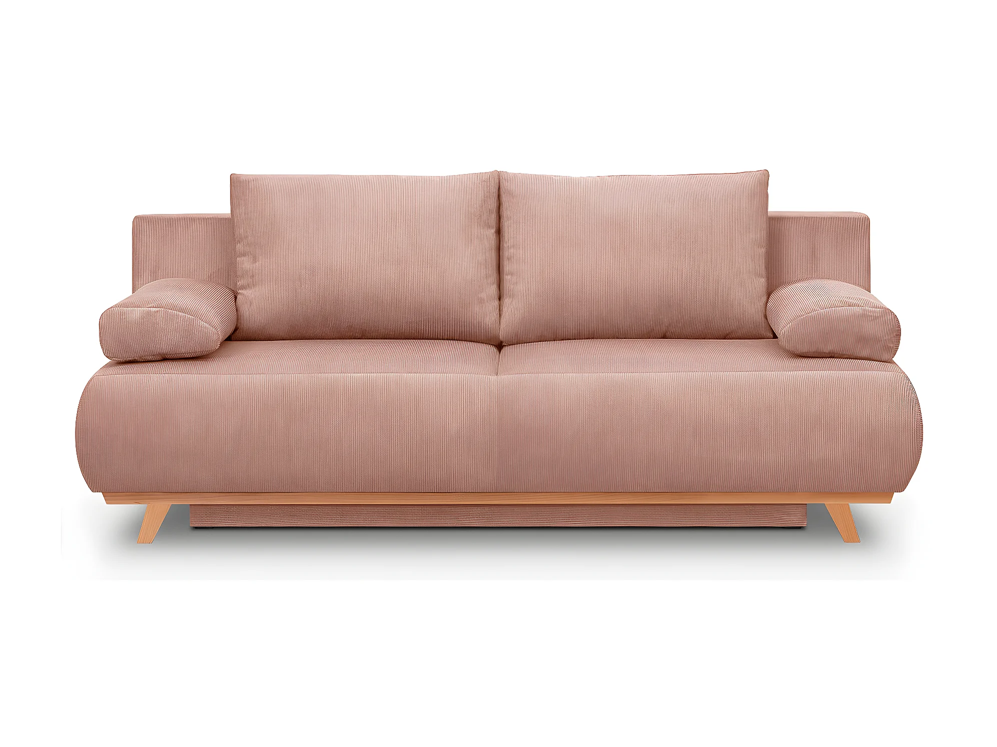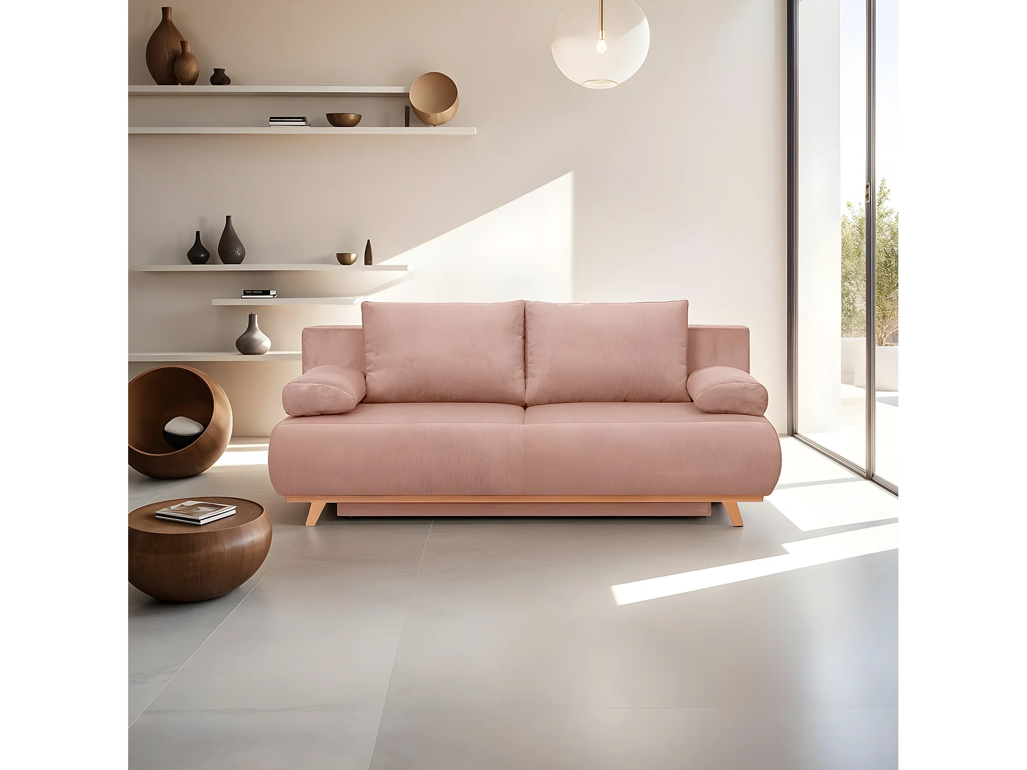 Canapé convertible 3 places avec coffre de rangement en velours fines côtes rose pâle - Laria