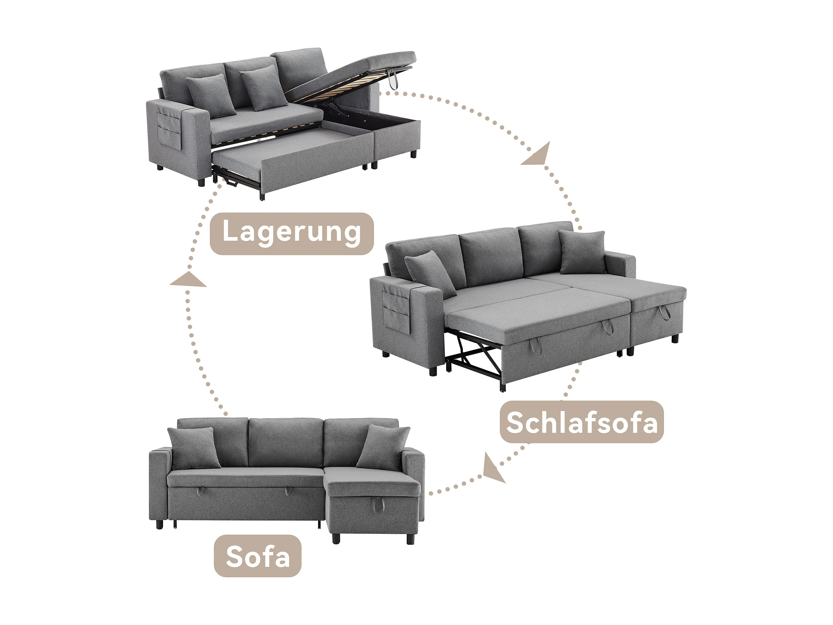 Canapé convertible 3 places avec rangement - 219.5 x 142.5 x 83 cm - canapé-lit de salon - lin - gris