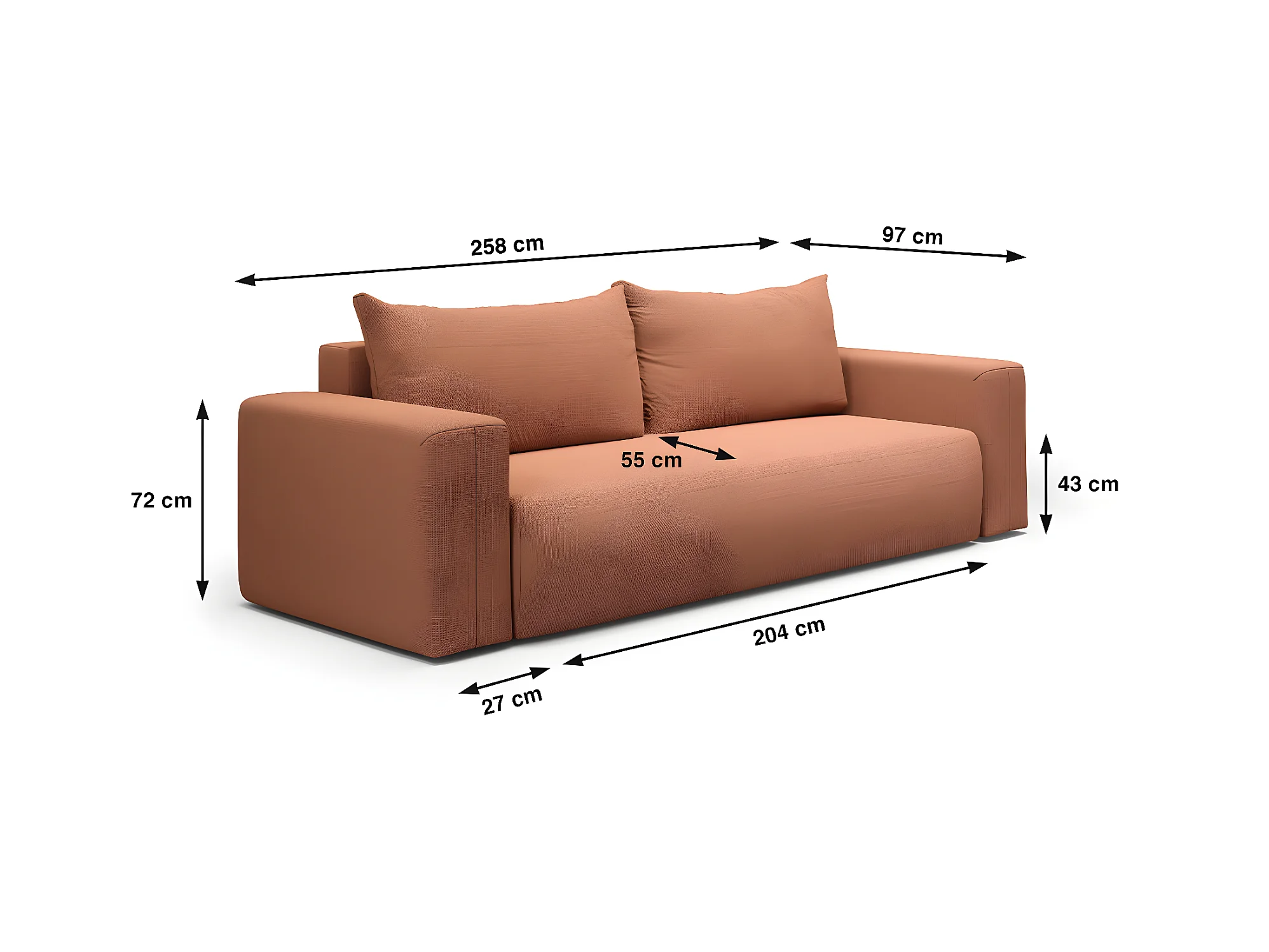 Canapé convertible 3 places coffre Bliss Cuivre