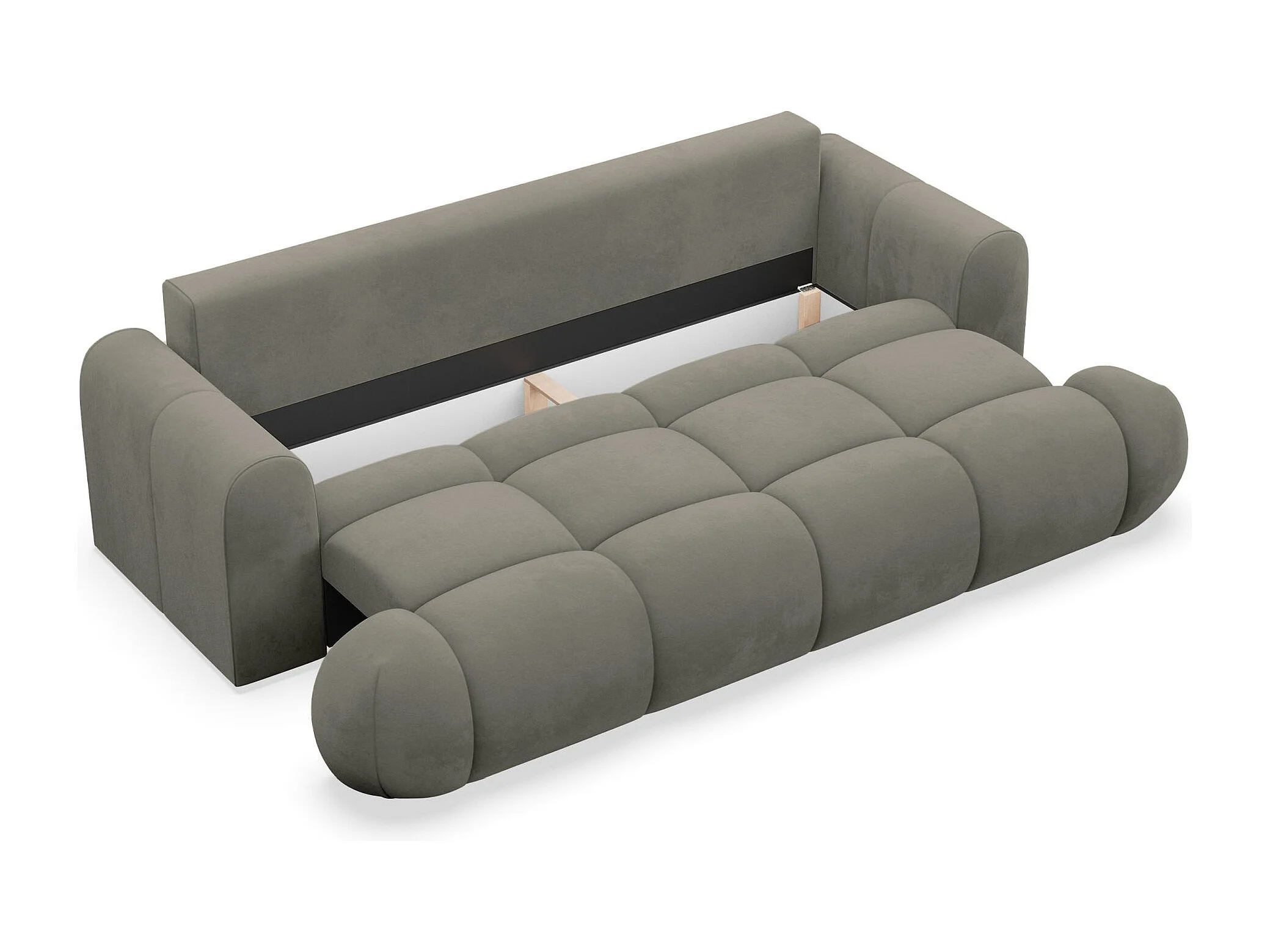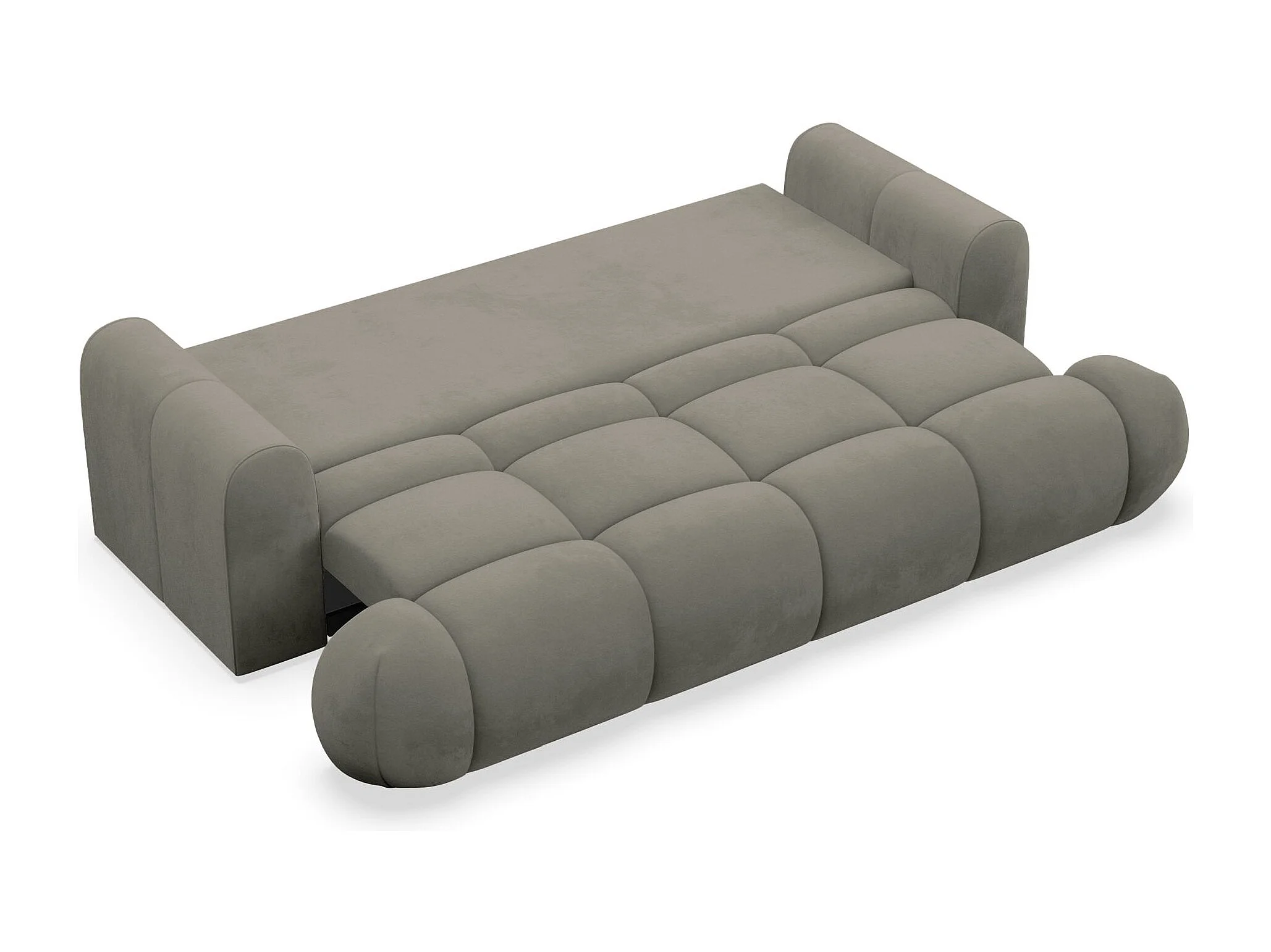 Canapé convertible 3 places – coffre de rangement – tissu velours hydrophobe – Beige foncé – OMBO DOCE